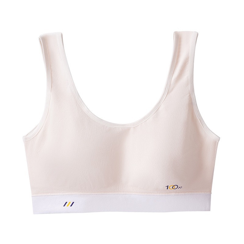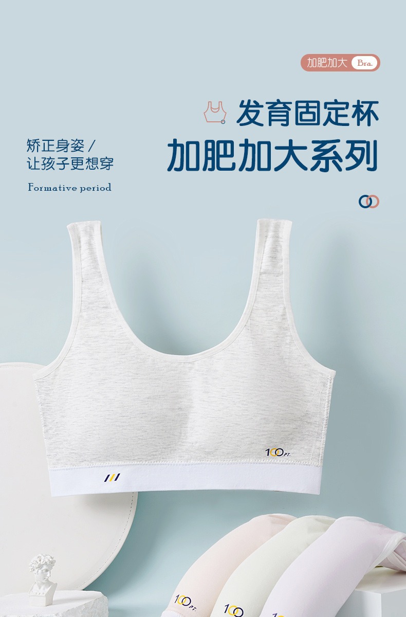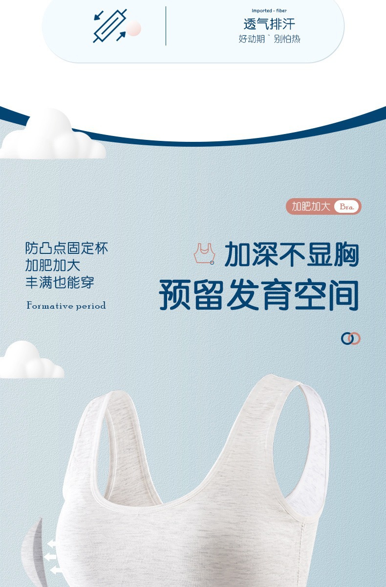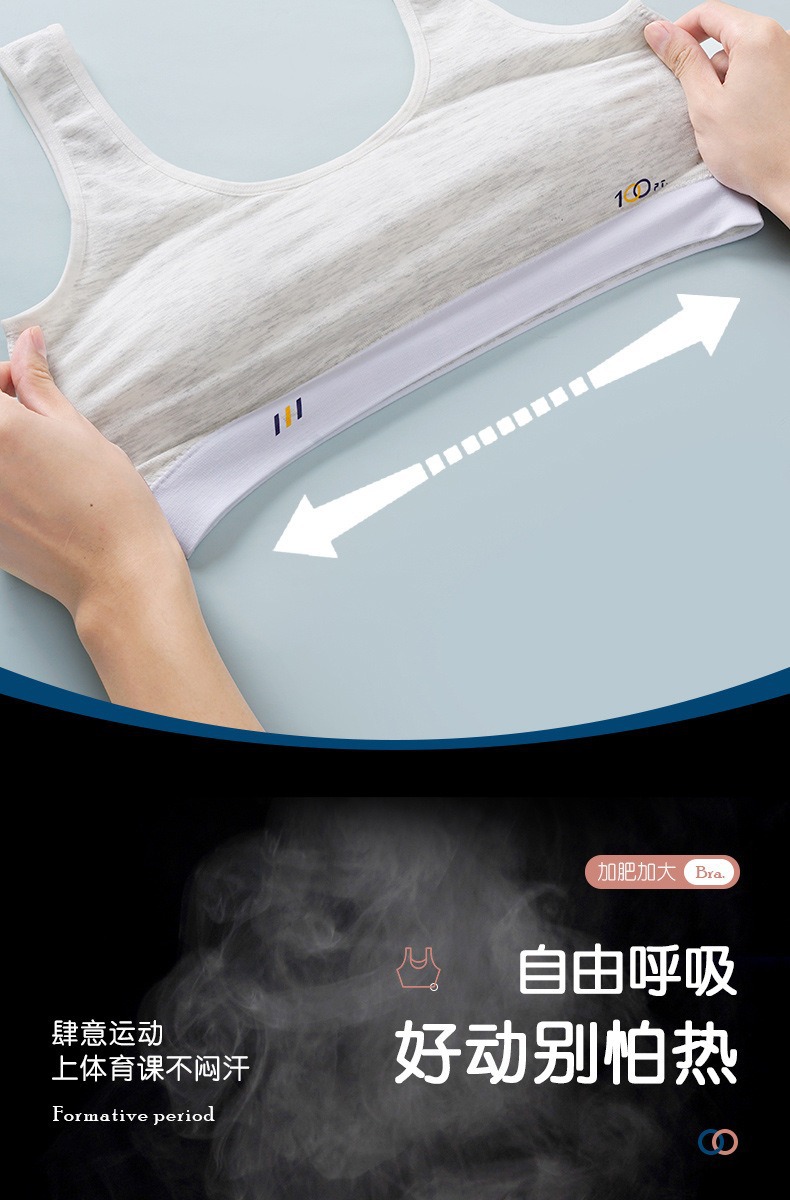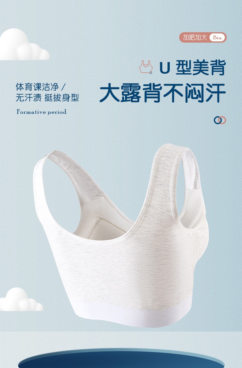 어깨가 넓고 등이 아름다운 학생들을 위한 심리스 플러스 사이즈, 노출 방지, 와이어 프리 고정 컵, 소녀용 순면 스포츠 브라