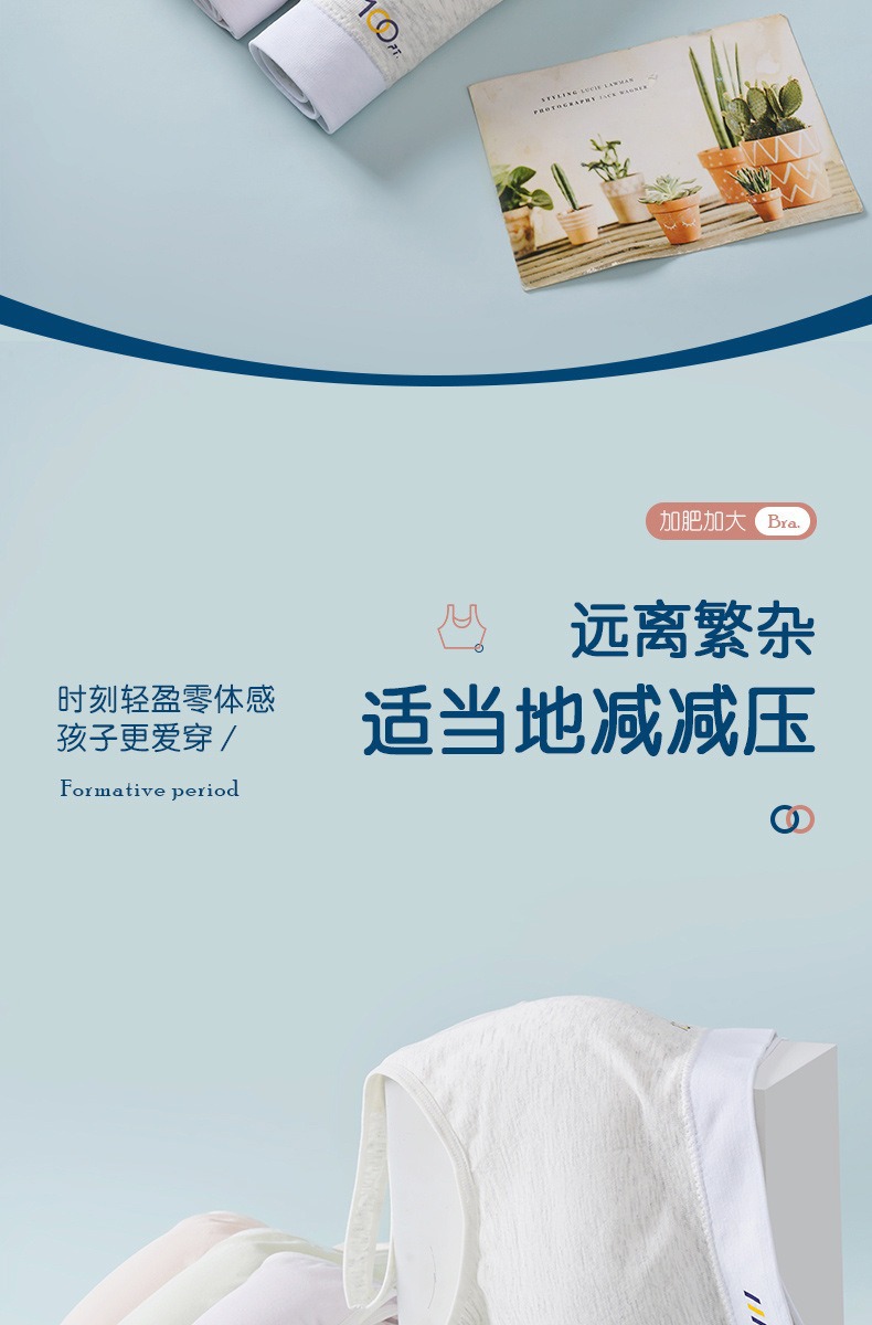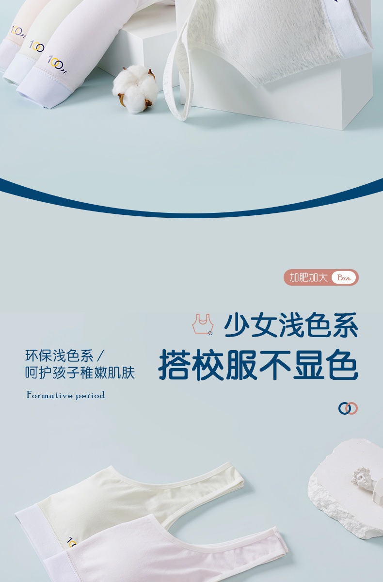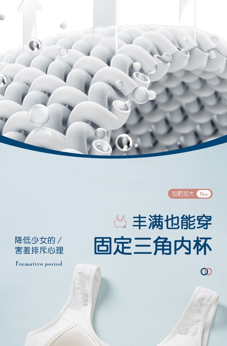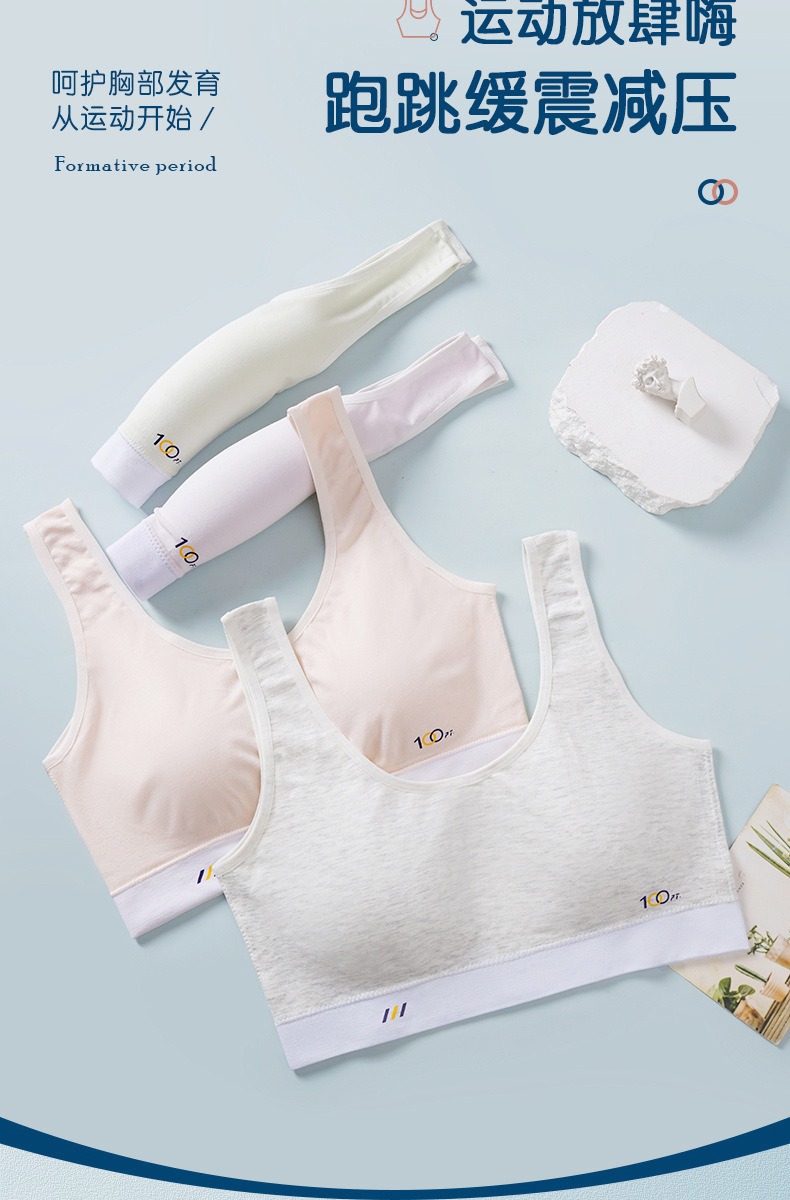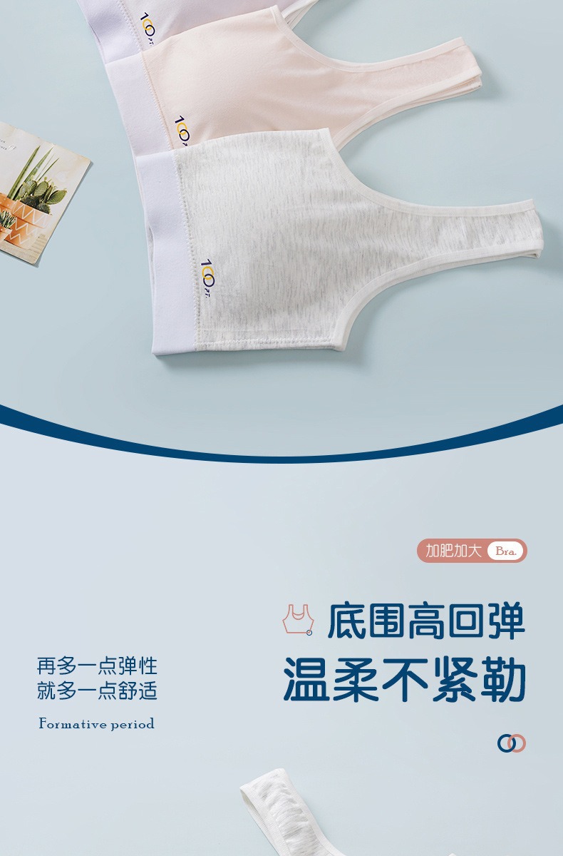 어깨가 넓고 등이 아름다운 학생들을 위한 심리스 플러스 사이즈, 노출 방지, 와이어 프리 고정 컵, 소녀용 순면 스포츠 브라