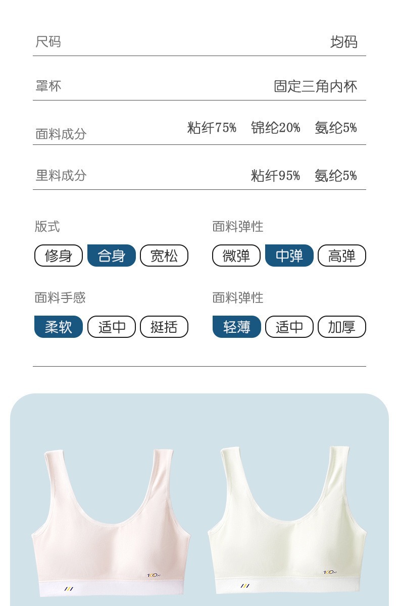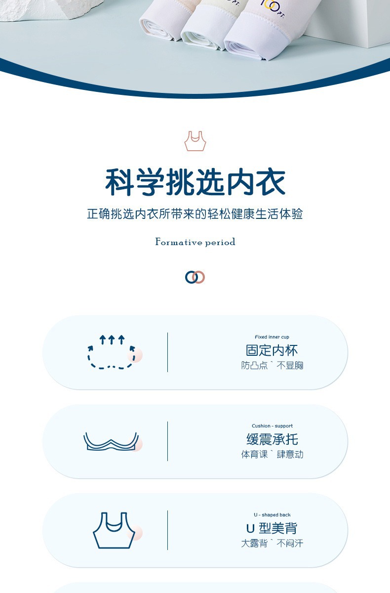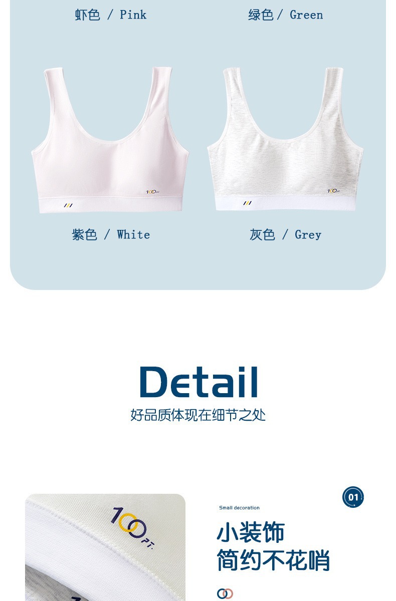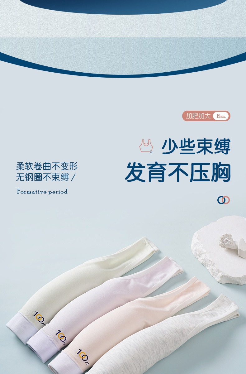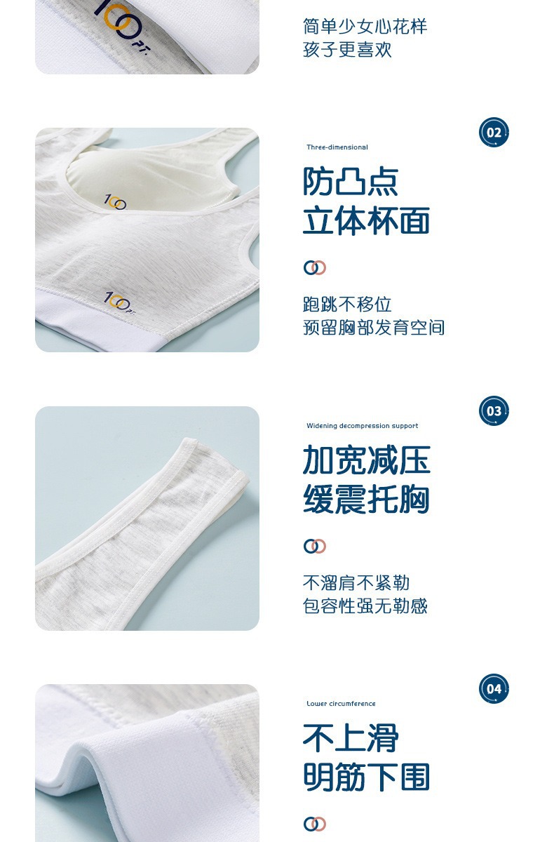 어깨가 넓고 등이 아름다운 학생들을 위한 심리스 플러스 사이즈, 노출 방지, 와이어 프리 고정 컵, 소녀용 순면 스포츠 브라