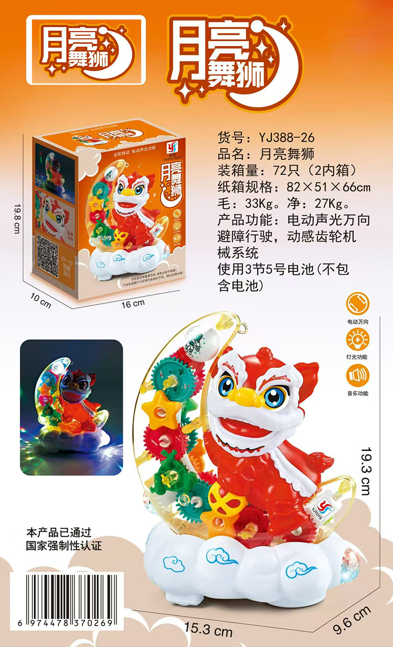 국경 간 투명 기어 달 사자 춤 전기 음악 조명 범용 운전 자동차 어린이 장난감 자동차 사자 깨우기 선물스토어 가기