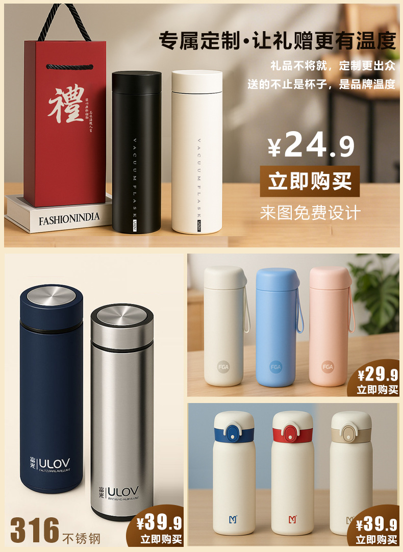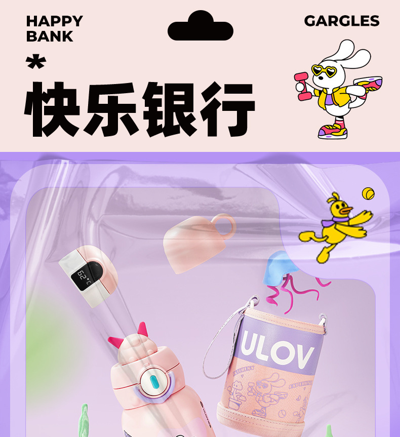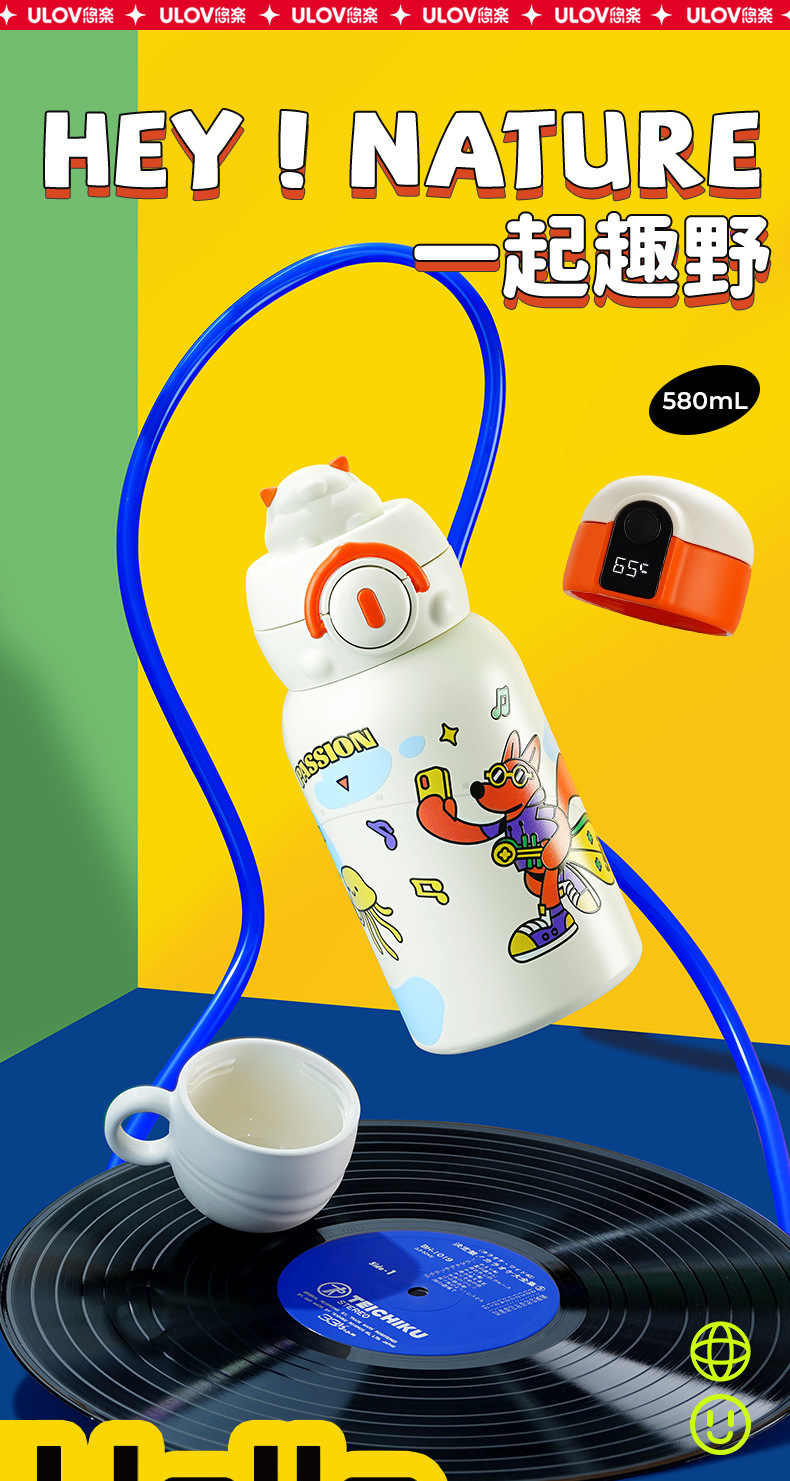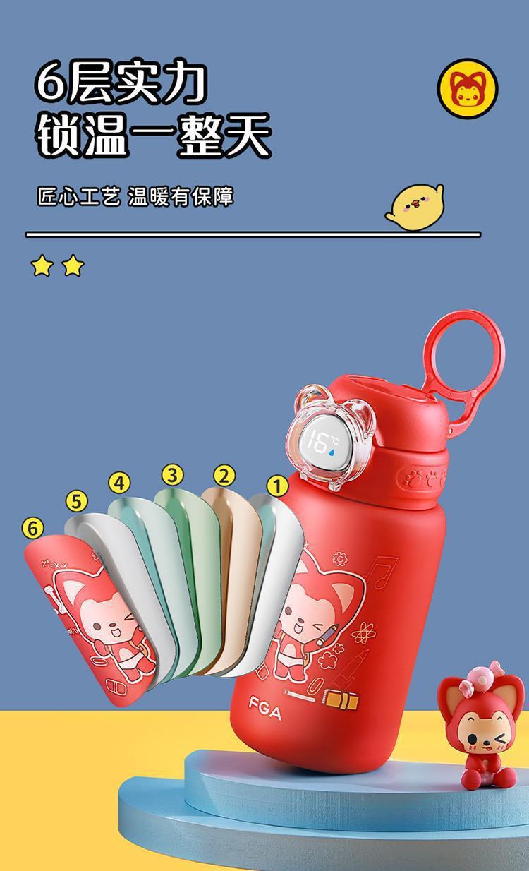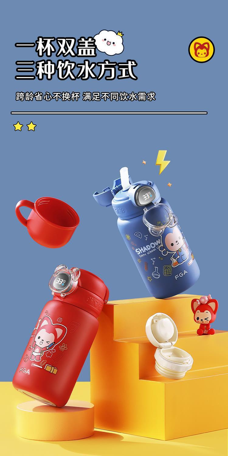 Fuguang 316L 스테인레스 스틸 지능형 온도 디스플레이 어린이 보온병 컵 학생 밀짚 물 컵 아기 주전자 도매스토어 가기