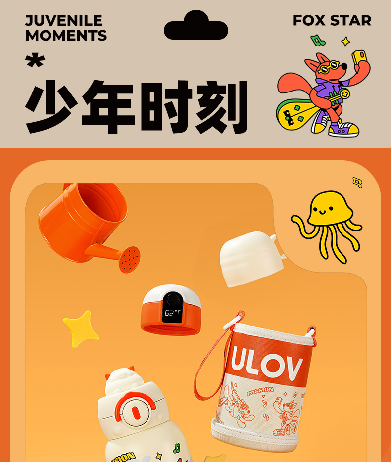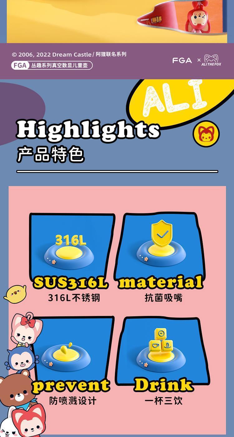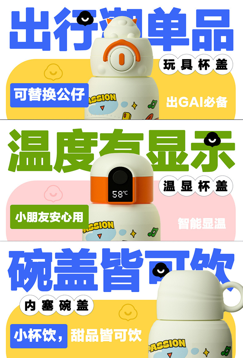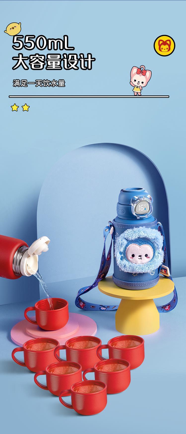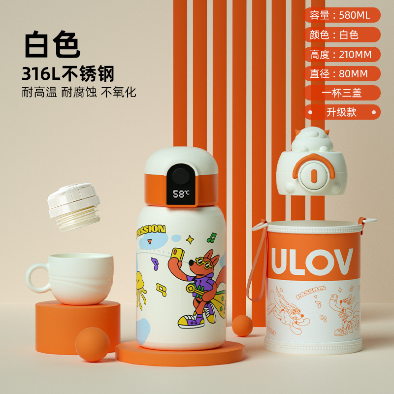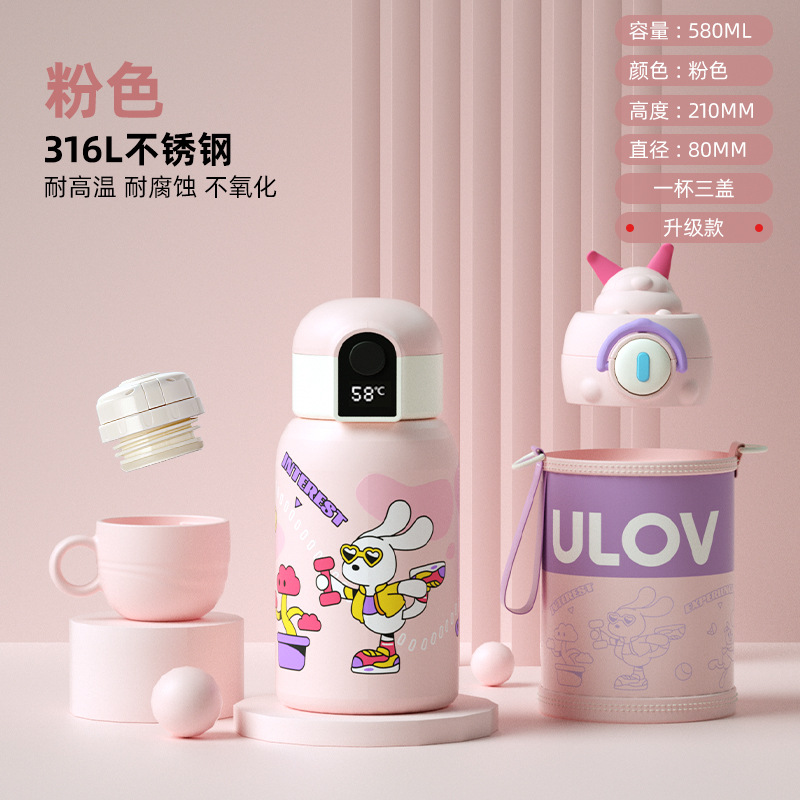 Fuguang 316L 스테인레스 스틸 지능형 온도 디스플레이 어린이 보온병 컵 학생 밀짚 물 컵 아기 주전자 도매
