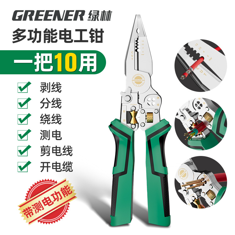녹색 숲 와이어 스트리퍼 전기 기술자 특수 와이어 커터 케이블 커터 와이어 스트리퍼 와이어 압착 펜치 새로운 다기능 전기 기술자 펜치스토어 가기