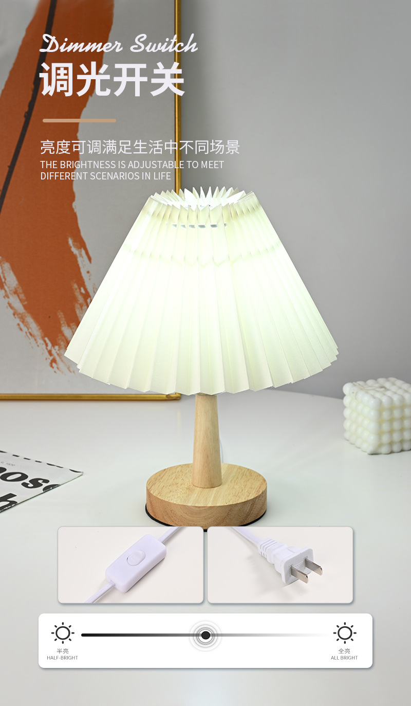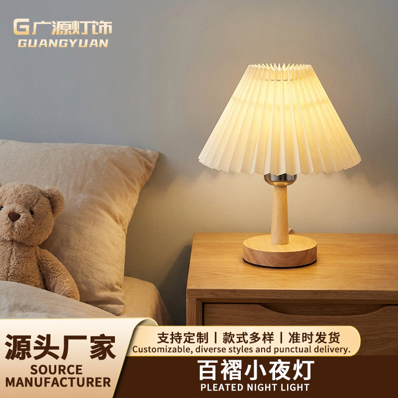 간단한 장식 민속 기숙사 복고풍 주름 테이블 램프 침실 머리맡 램프 우산 모양의 야간 조명 분위기 램프 창조적 인 선물