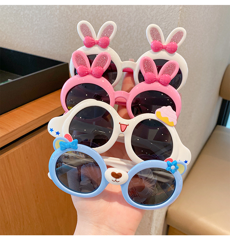 토끼 만화 실리콘 선글라스 소녀 귀여운 안티 UV 선글라스 어린이 음영 안티 눈 선글라스스토어 가기