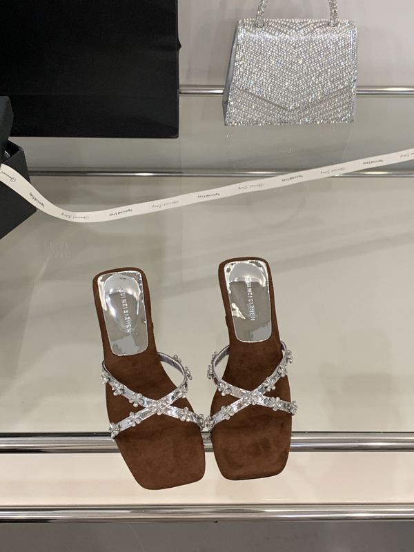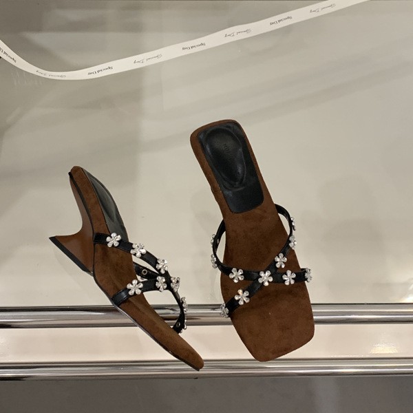 여성을 위한 아름다운 라인스톤 샌들 2025 신상 여름 아우터 하프 드래그 특별한 모양의 힐 프렌치 하이힐 웨지 샌들