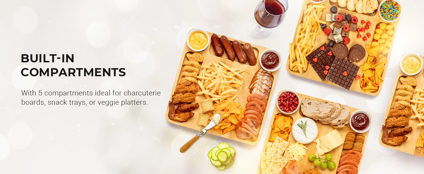 나무 도마, 가정용 주방 디너 플레이트, 탁상용 델리 치즈 플레이트, 원목 칸막이 디너 플레이트, 과일 스낵 보관함