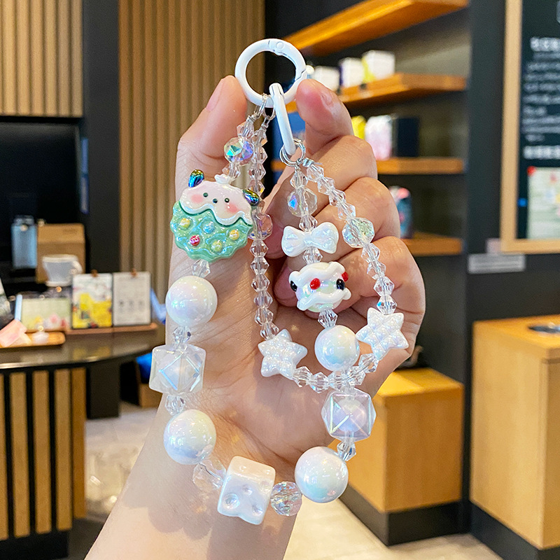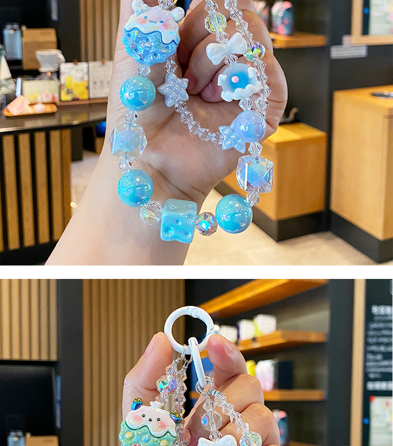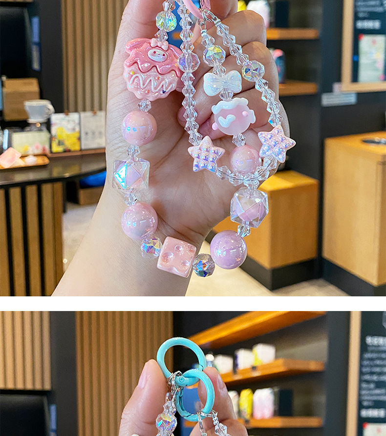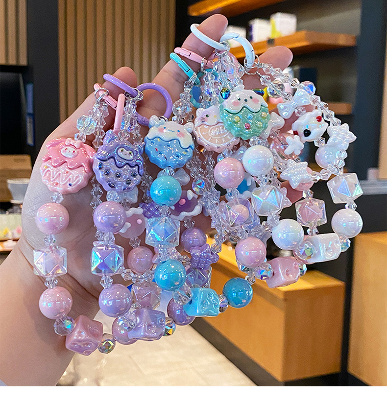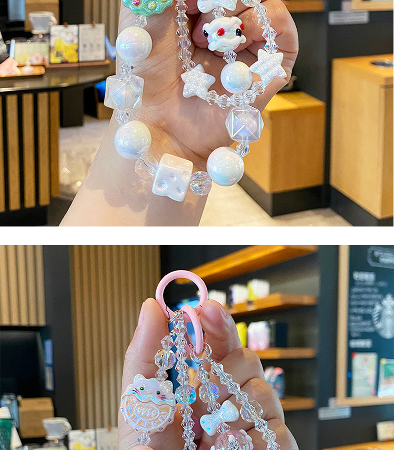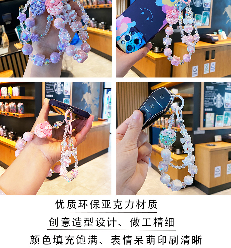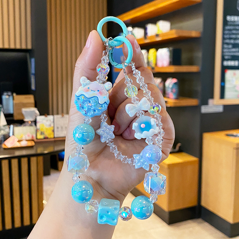만화 산리오 수제 구슬 키 체인 귀여운 KT 고양이 전화 체인 장난감 가방 펜던트 커플 키 체인스토어 가기