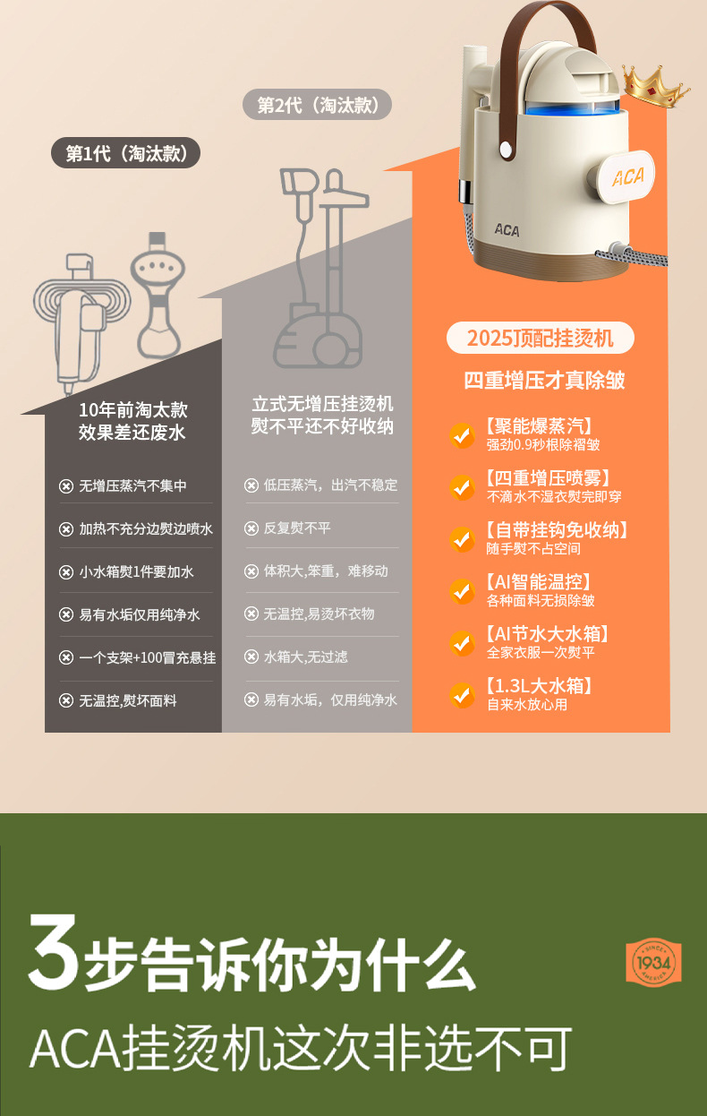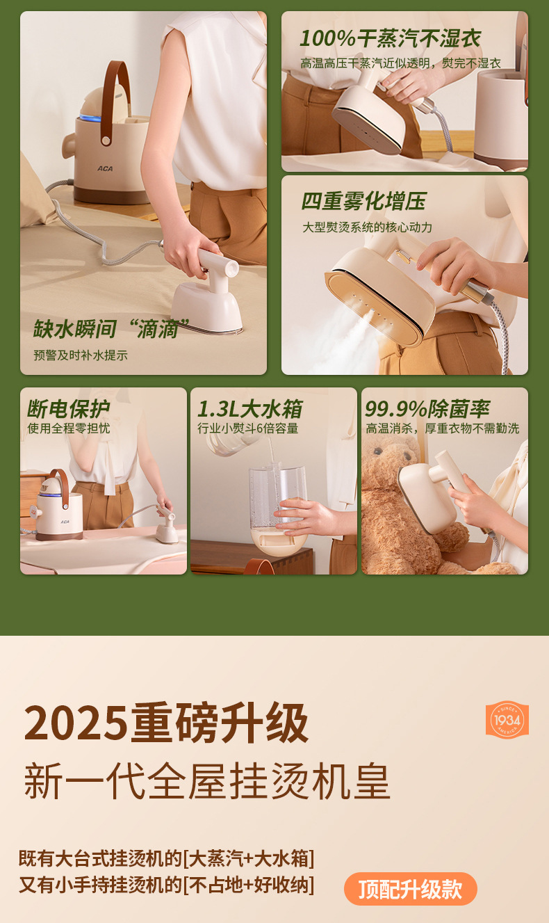 ACA 북미 가전 가정용 의류 다림질 기계 가정용 스프레이 다림질 휴대용 다림질 기계 가압 대형 스팀 전기 다리미 스프레이 다림질스토어 가기