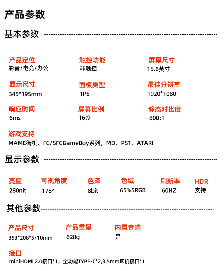 EIMIO15.6 인치 게임기 휴대용 모니터 컴퓨터 게임 서브 스크린 확장 화면 스위치 외부 화면