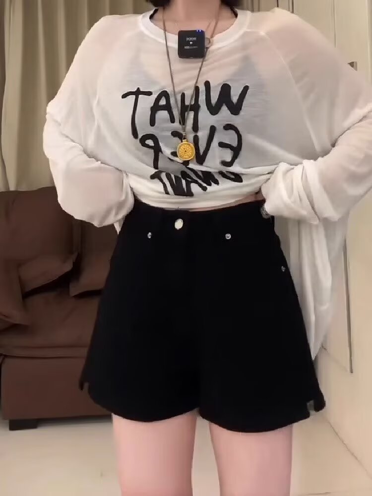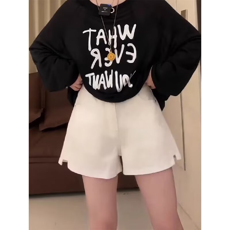 여성용 아메리칸 레트로 하이웨이스트 여름 스타일 슬릿 데님 반바지, 와이드 레그, 뚱뚱한 mm, 루즈하고 슬림하며 다재다능한 A라인 핫팬츠스토어 가기