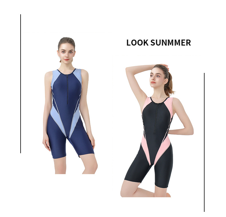 2025년 신형 5부 다리 슬리밍 배 커버 조끼 라인 배색 디자인 여성 원피스 복서 수영복