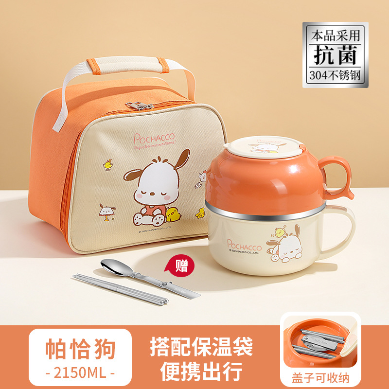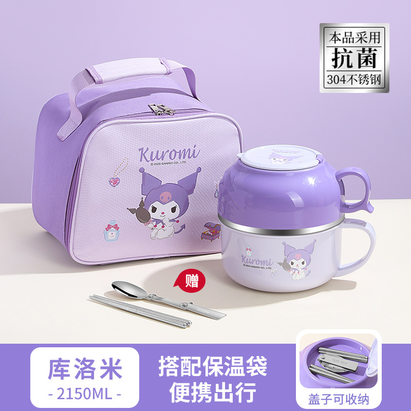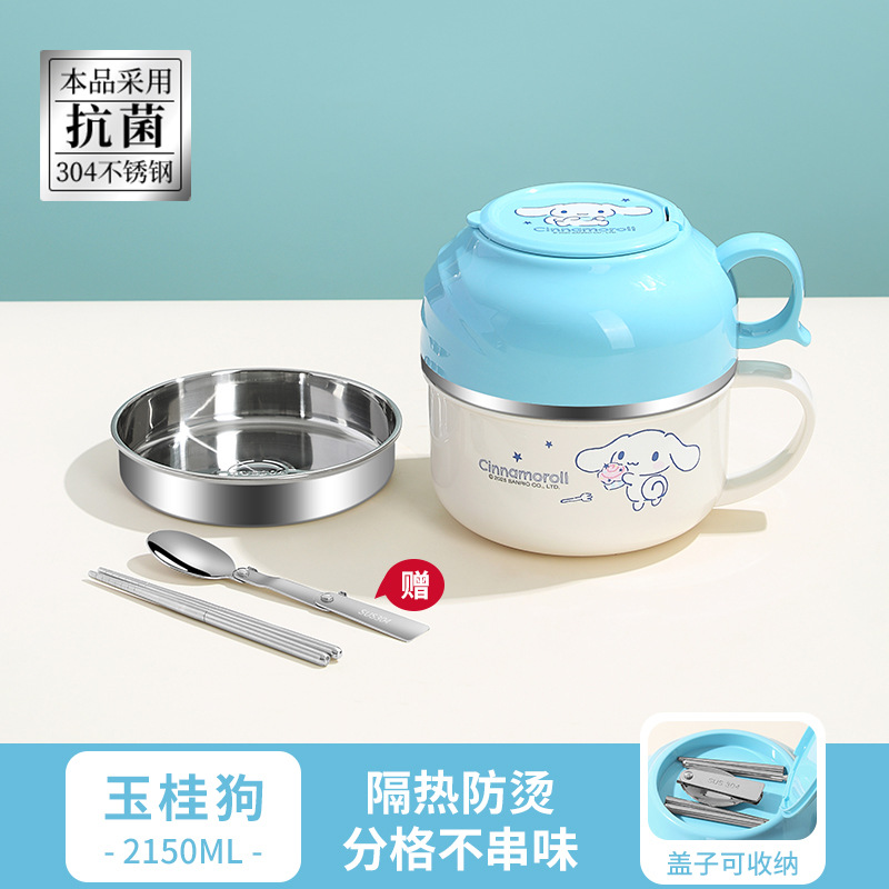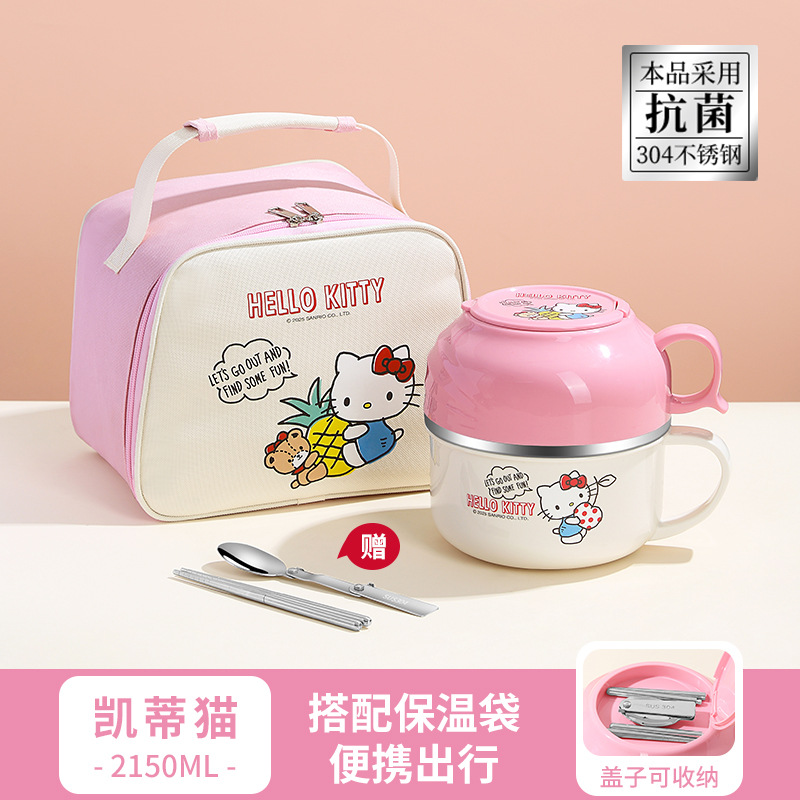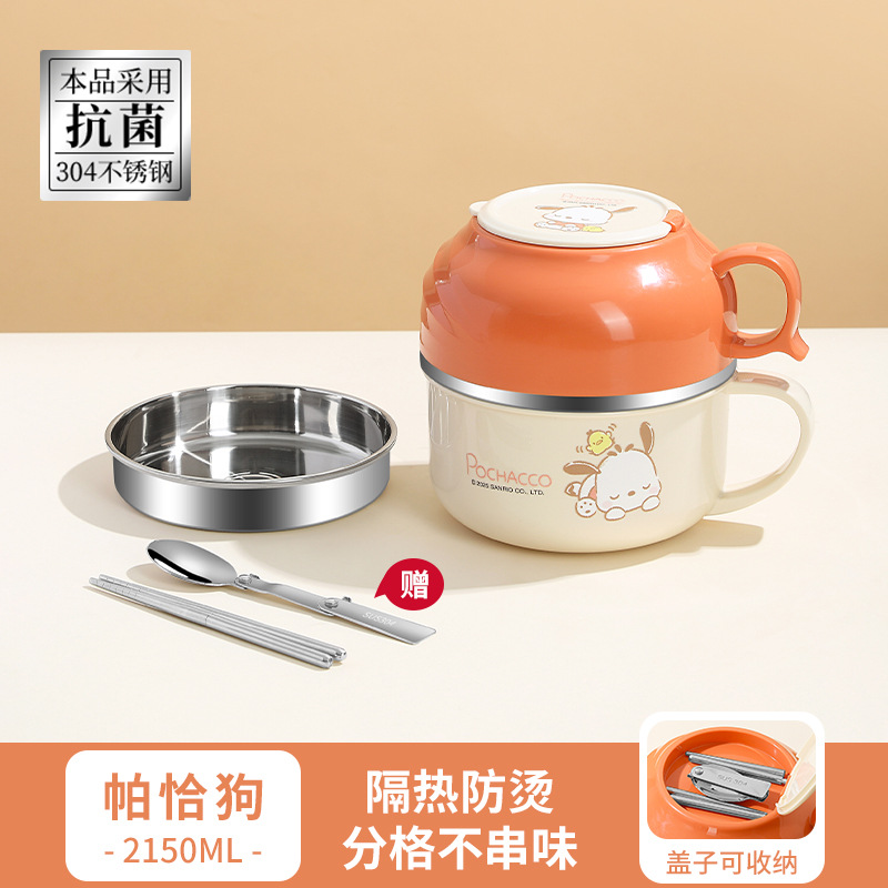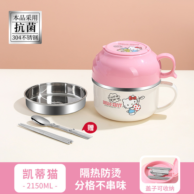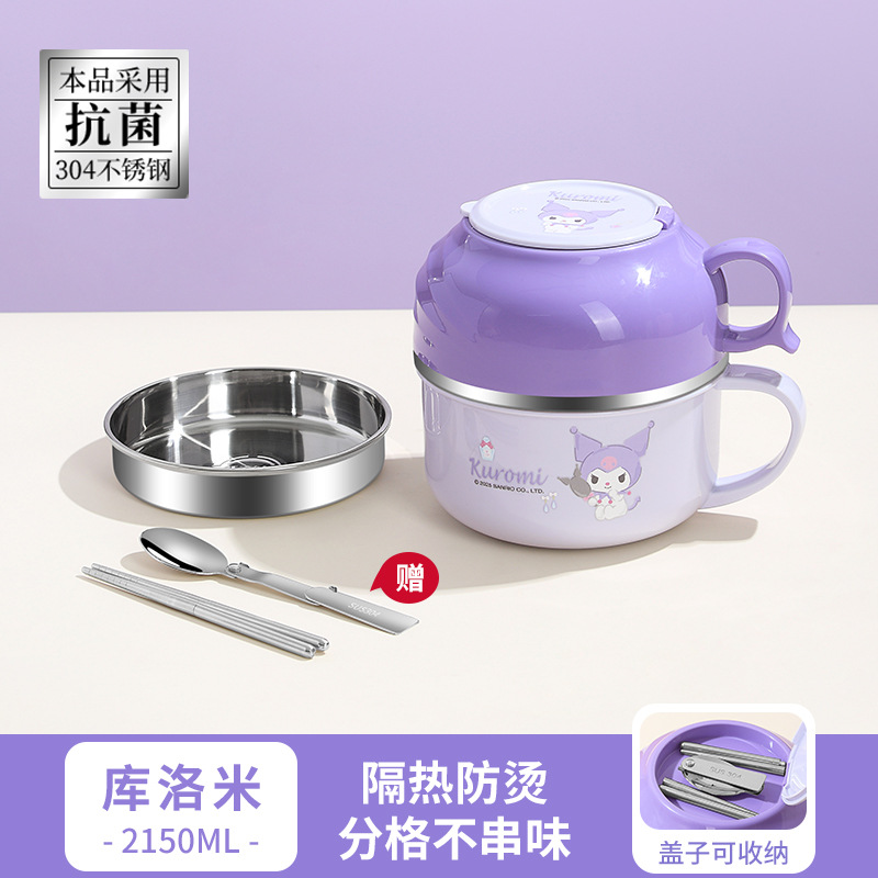 산리오 인스턴트 국수 그릇 밥 상자 304 스테인레스 스틸 절연 밥 그릇 사무실 직원이 자신의 그릇 학생 패스트 푸드 컵을 가져옵니다스토어 가기