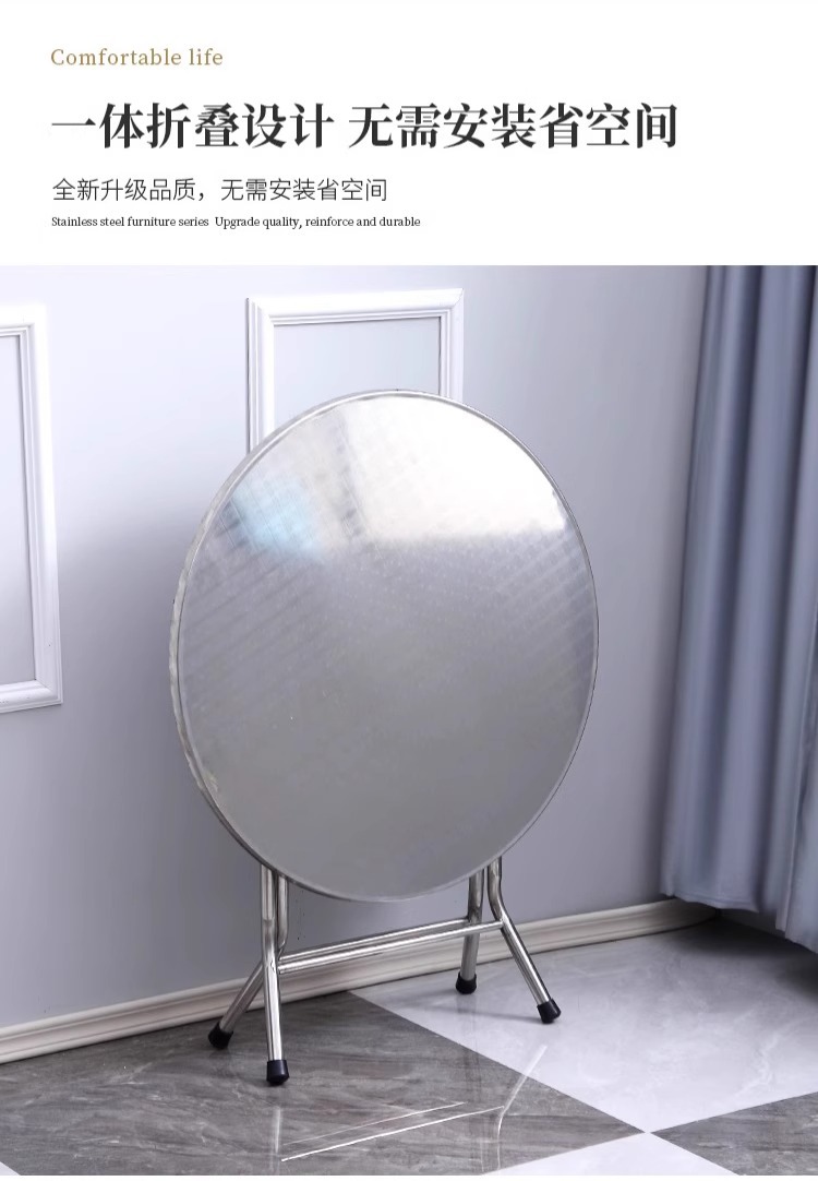 두꺼운 스테인레스 스틸 식탁 가정용 원형 식탁 접이식 테이블 야외 식사 사각형 테이블 접이식 테이블 원형 테이블스토어 가기