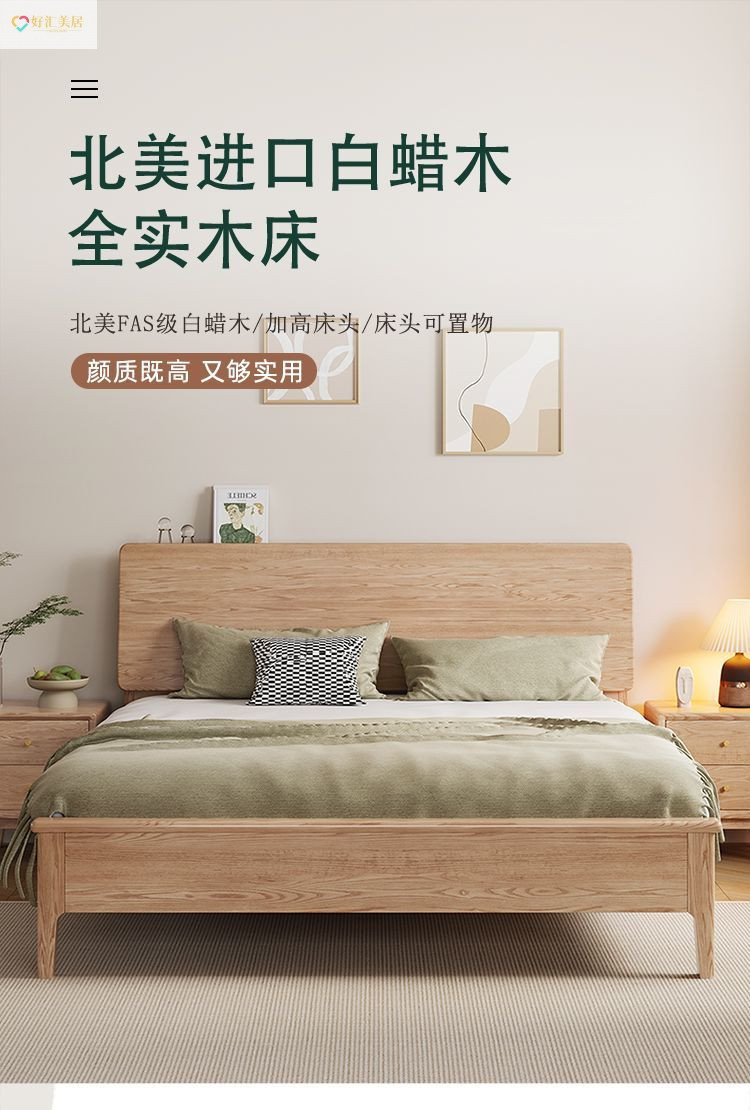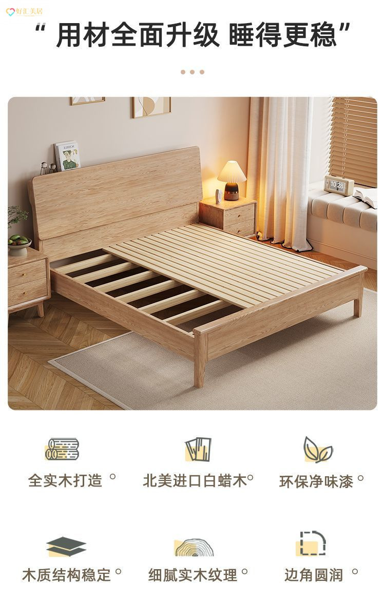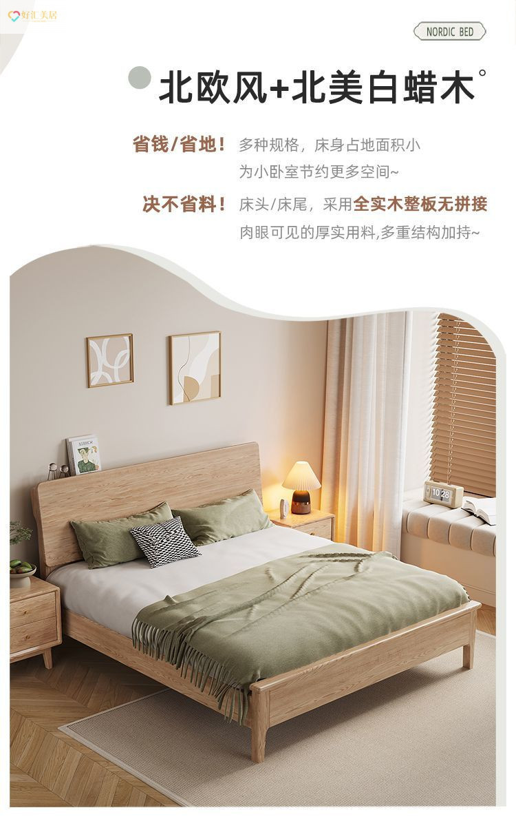 현대식 물푸레나무 침대 1.5 가정용 더블 마스터 침실 대형 침대 북유럽 심플 1.8 더블 침대 1.2 웨딩 침대 사일런트스토어 가기