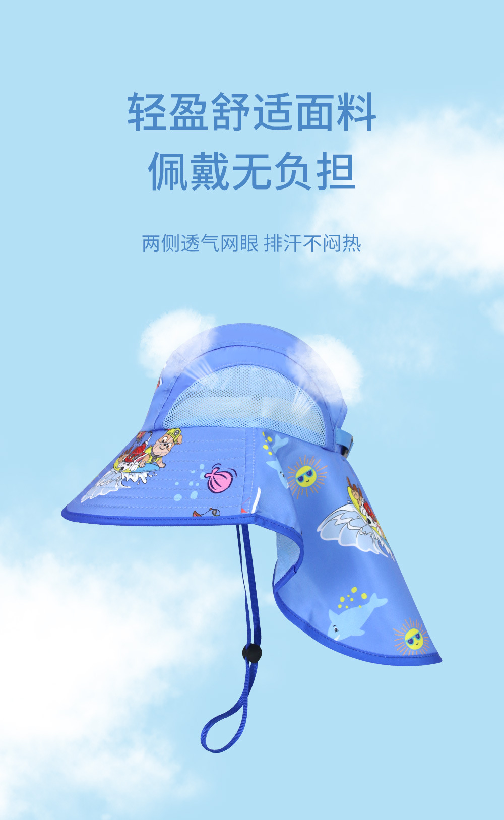 새로운 만화 어린이 모자 소년과 소녀를위한 여름 태양 모자 큰 챙 메쉬 목도리 모자 태양 보호 어부 모자