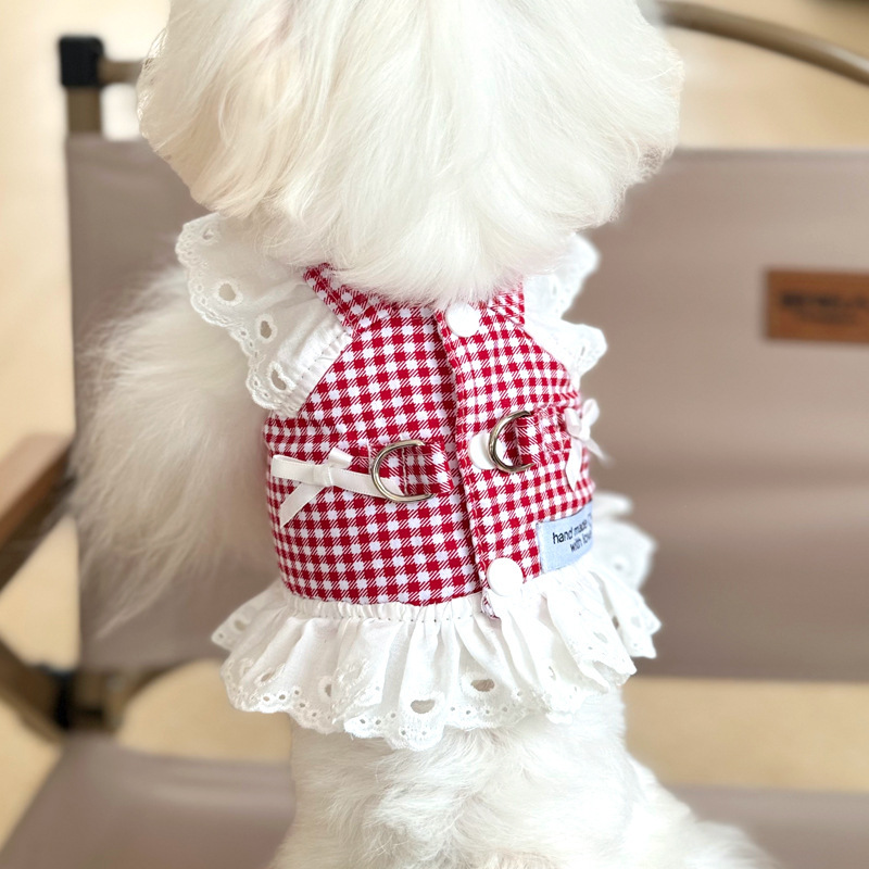 원래 애완 동물 가슴 스트랩 개 옷 견인 로프 스커트 작은 개 보메이 봄 여름 국경 공장 도매스토어 가기