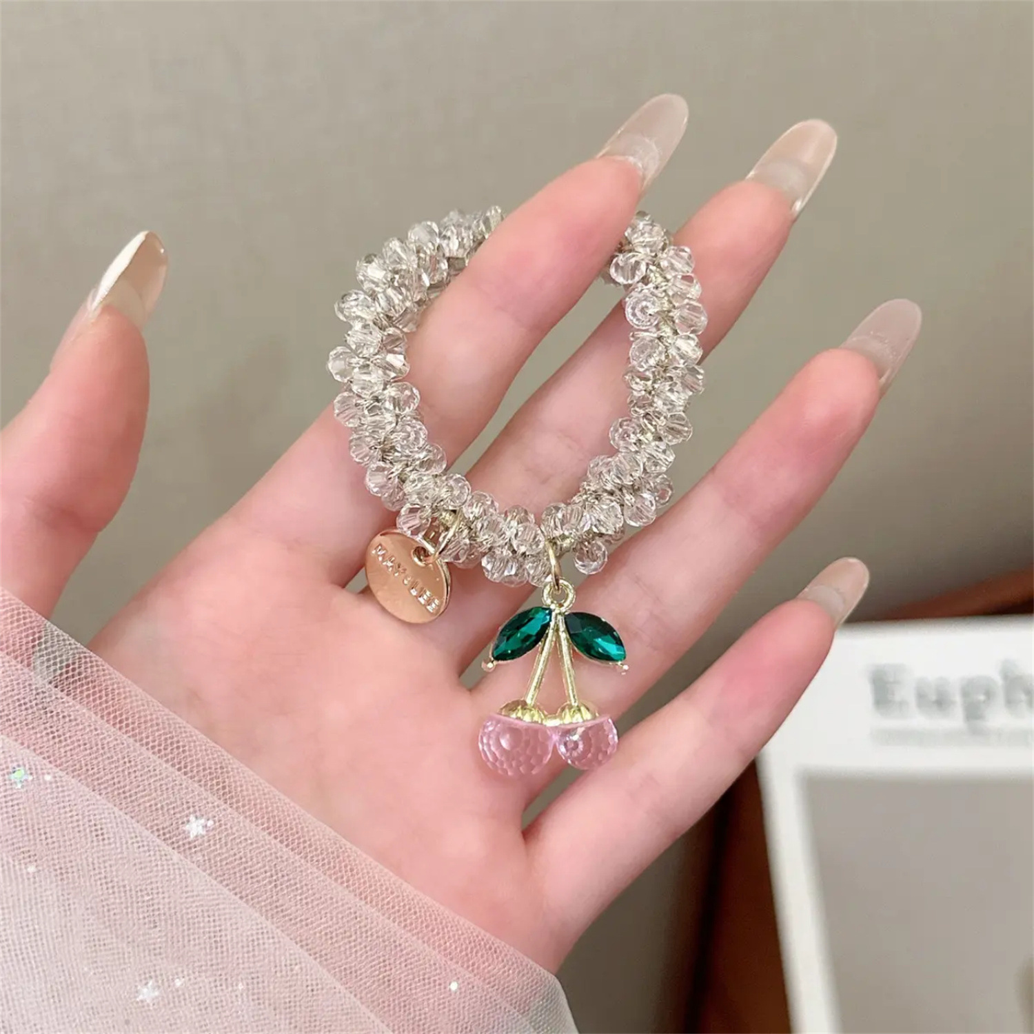 [사쿠라 폴링 스타 펜던트] 한국 라인스톤 벚꽃 펜던트 기질 머리 밧줄 여자 친구 팔찌 이중 사용 복숭아 꼬리 보내기
