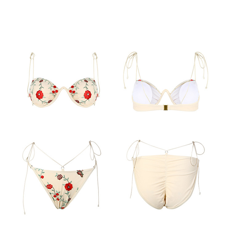 2025 새로운 레드 메쉬 롱 스커트 3 피스 비키니 섹시 푸시 업 슬리밍 온천 휴가 수영복 여성용스토어 가기