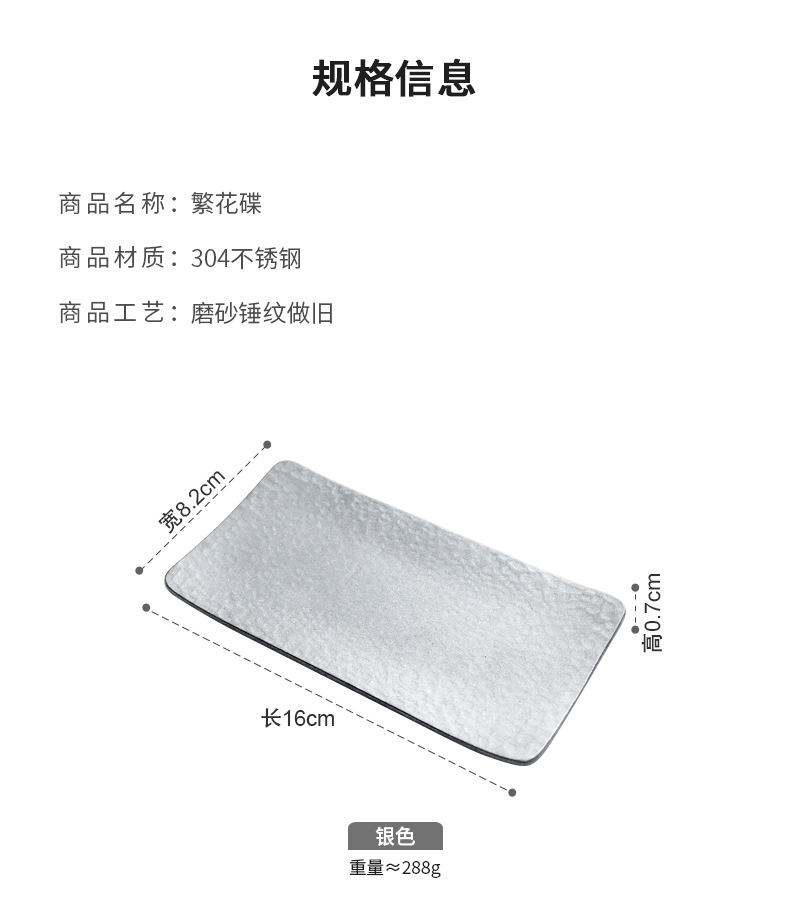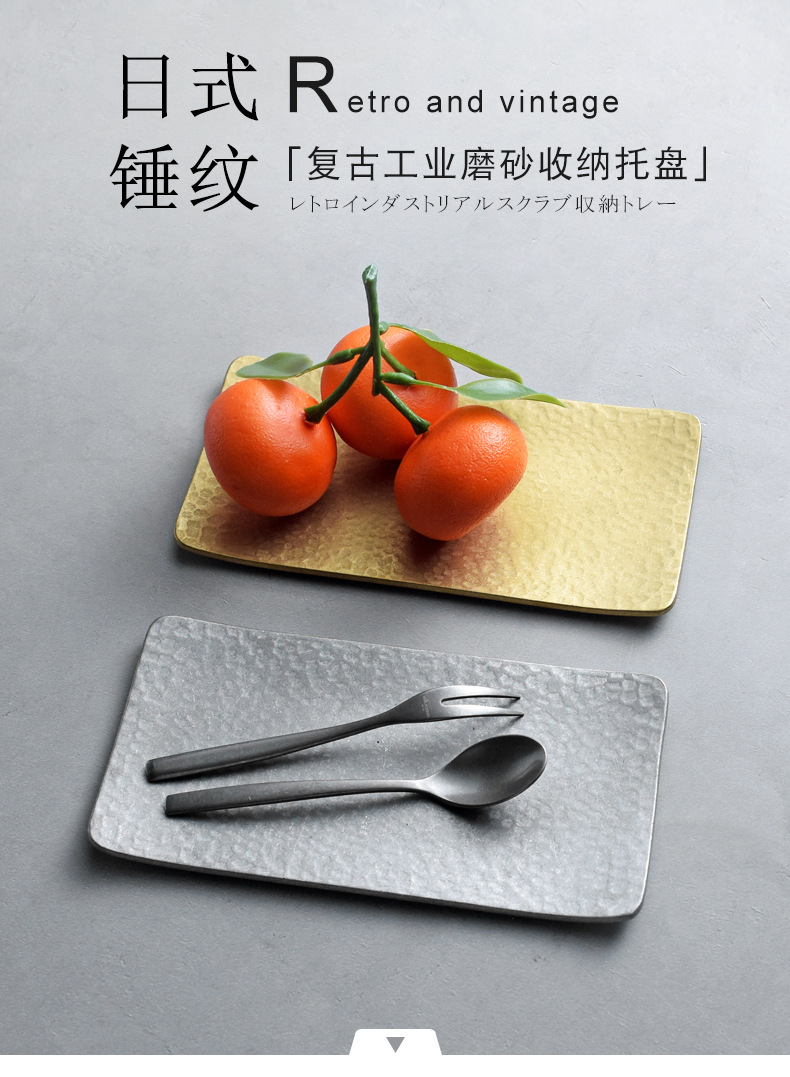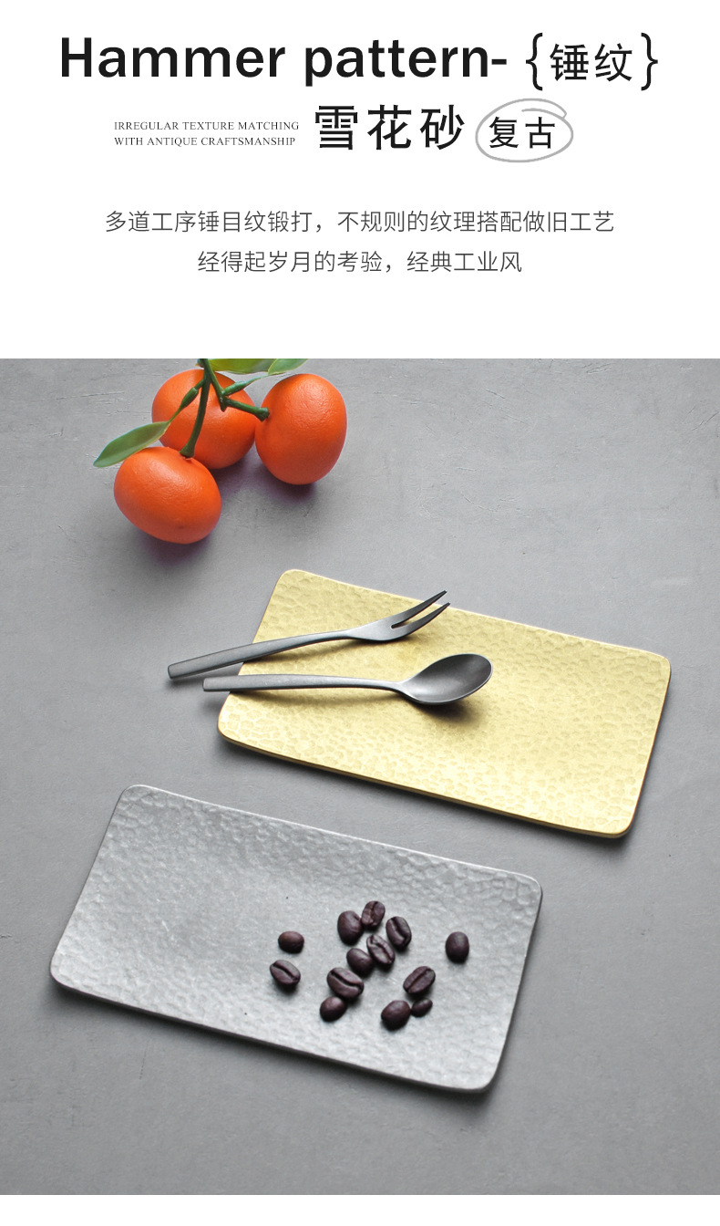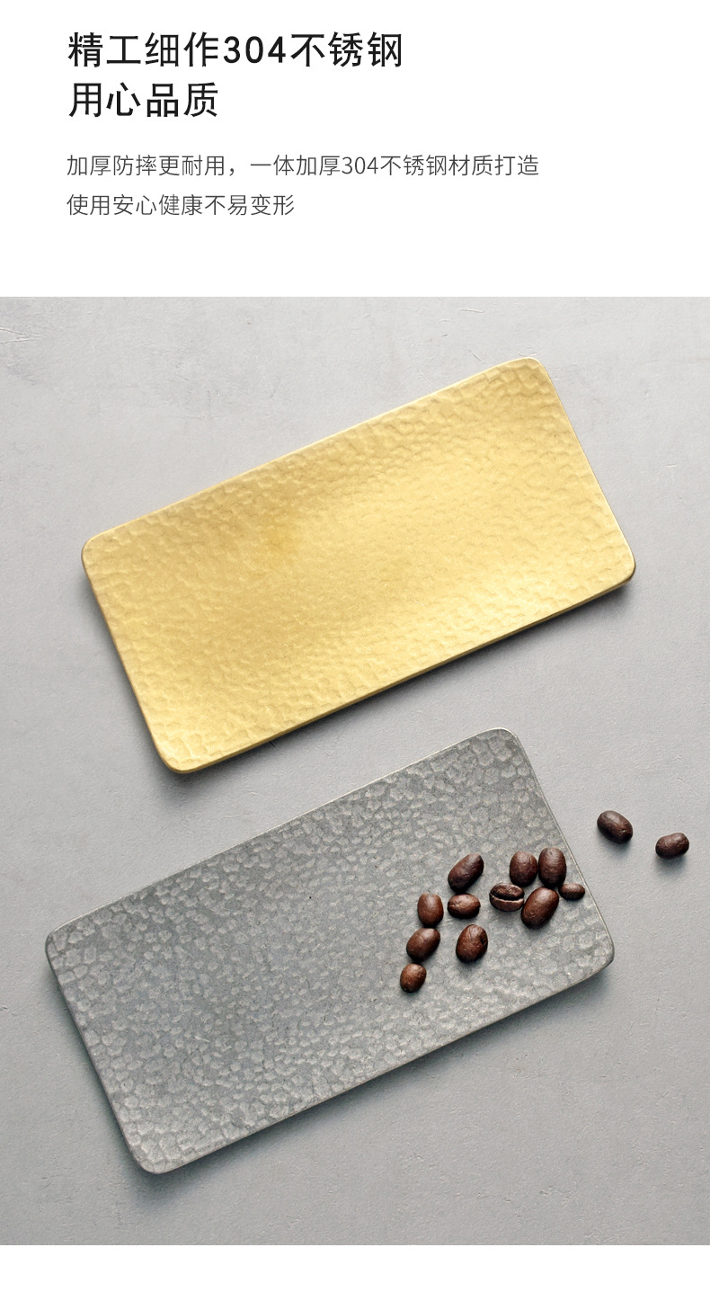 304 스테인레스 스틸 접시, 망치질 패턴 트레이, 금속 수건 접시, 스시 식사 접시, 복고풍 오래된 직사각형 접시