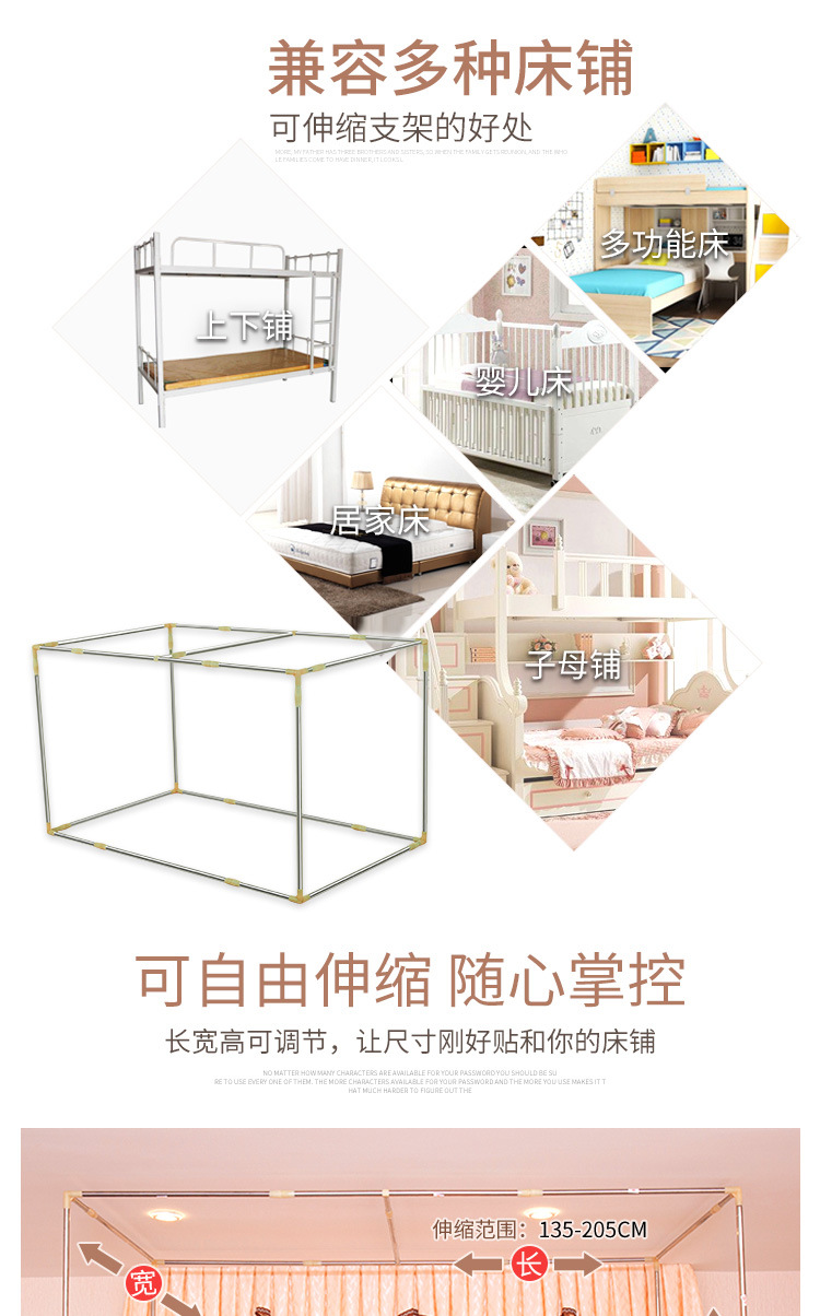 확장형 기숙사 침대 커튼 브래킷 페인트 대학생 상단 및 하단 침대 차광 천 모기장 침대 선반 조절