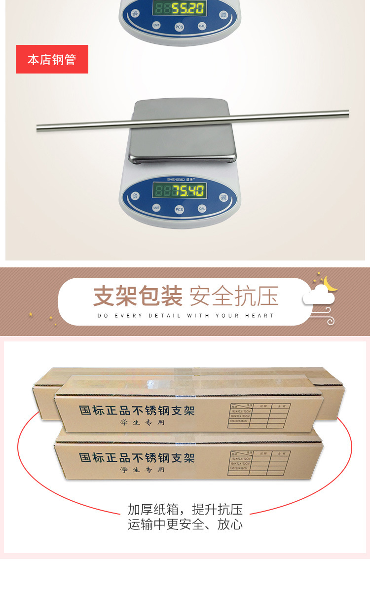 • 두꺼운 스테인레스 스틸 브래킷, 노루발 유형, 텔레스코픽 유형, 너비, 길이 및 높이 조절 가능