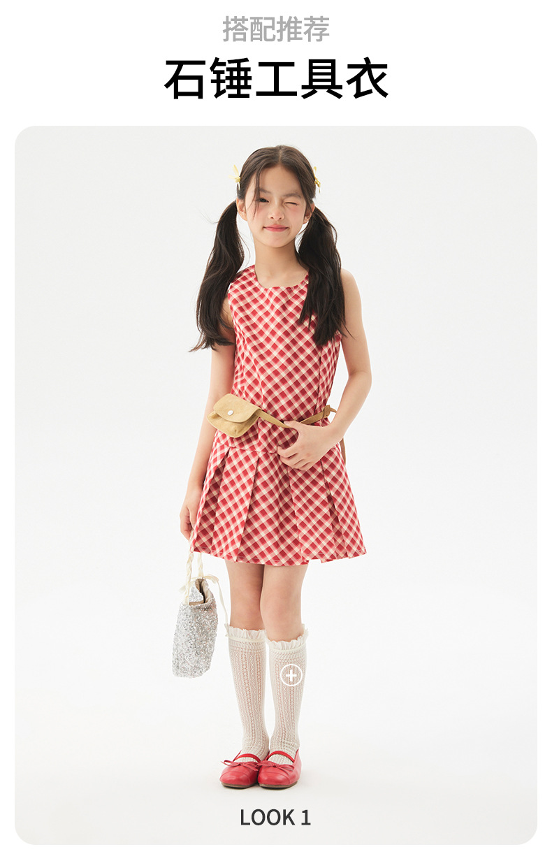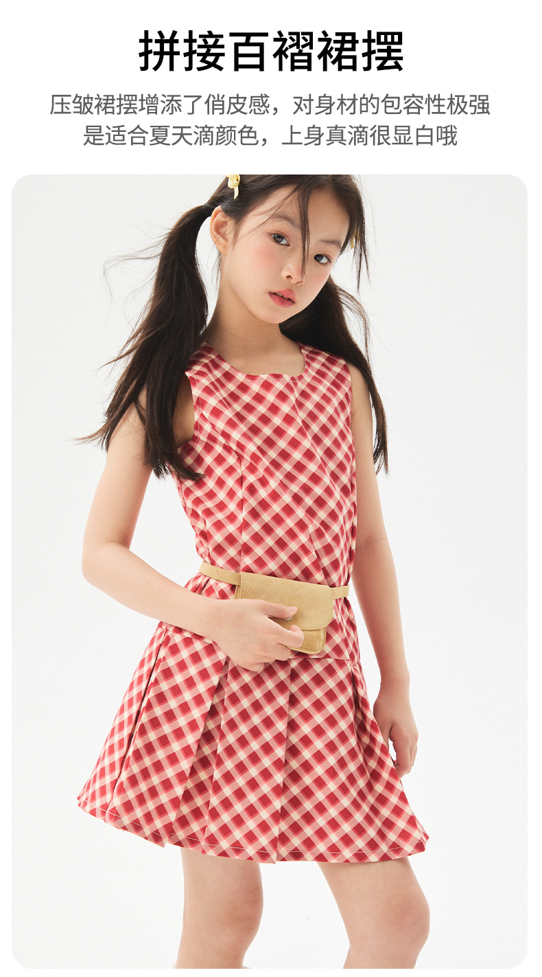 여아 격자 무늬 드레스 2025 여름 신작 아동 한국 아동복 스커트 중대형 아동 캐주얼 플리츠 스커트 유행스토어 가기