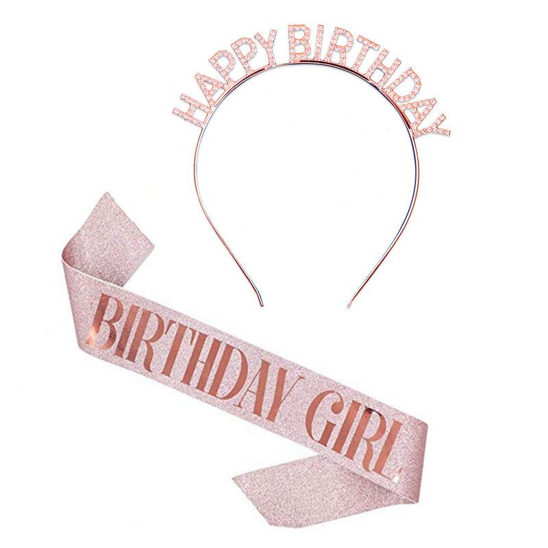 • 로즈 골드 생일 다이아몬드 머리띠 + 로즈 골드 소녀 어깨끈