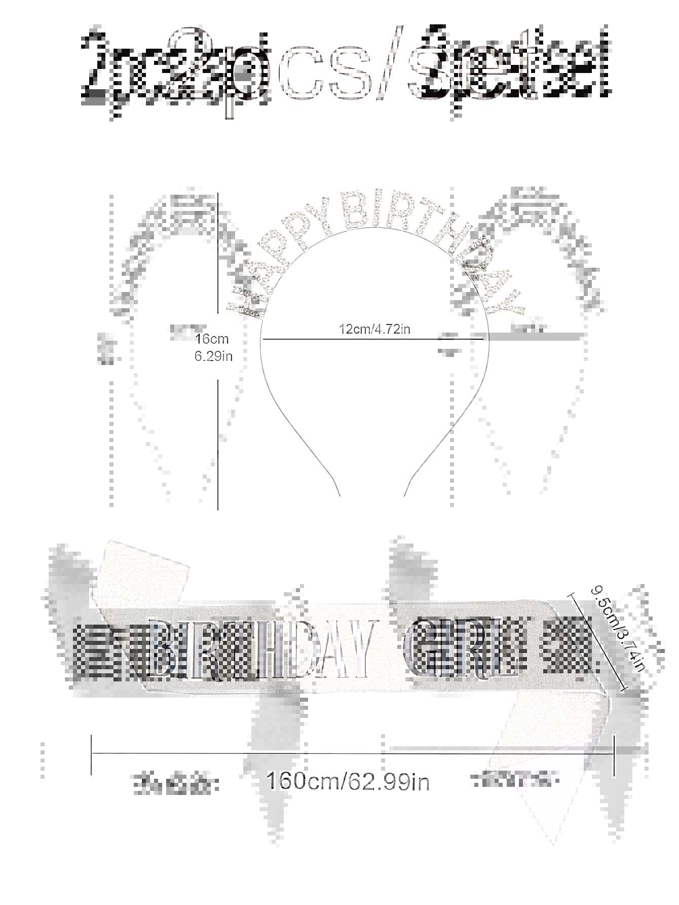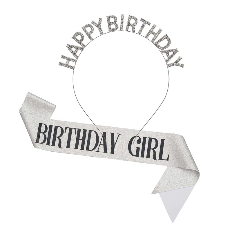 • 다이아몬드가 박힌 실버 생일 머리띠 + 실버 소녀 어깨끈