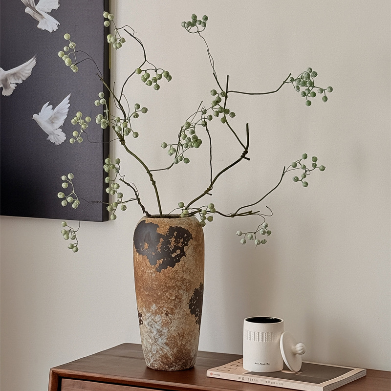 거실을위한 조용한 스타일 꽃병 고급 감각 물 영양 꽃-세라믹 빛 도자기 냄비 선 스타일 레트로 중국 스타일의 거친 도자기 장식품스토어 가기