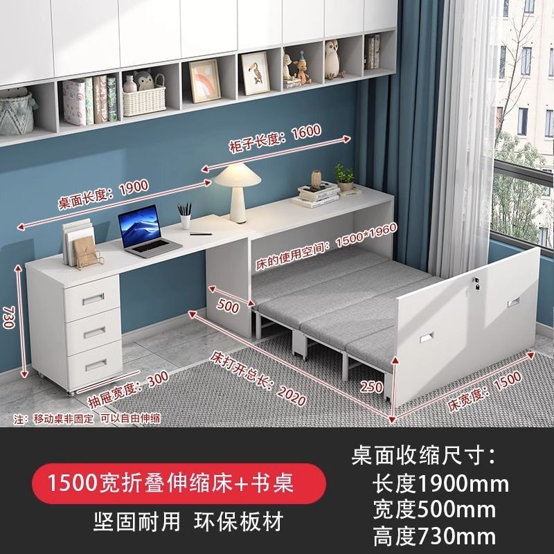 • 150cm 따뜻한 흰색 서랍 테이블 캐비닛 + 접이식 침대 면 및 린넨 + 스폰지 쿠션