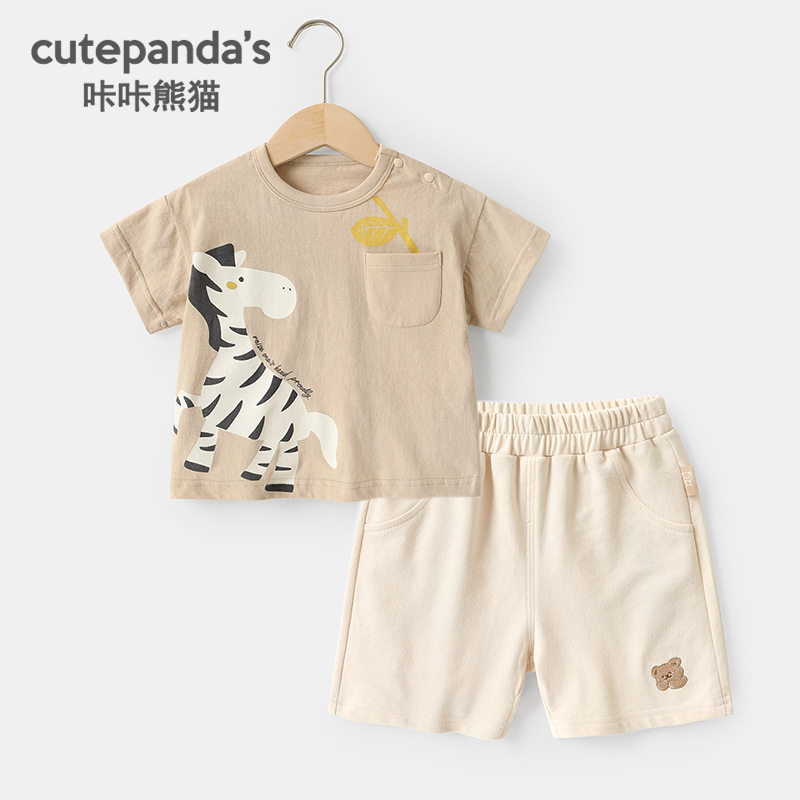새로운 아기 옷 소년 캐주얼 반팔 정장 여름 아기 어린이 만화 반팔상의스토어 가기