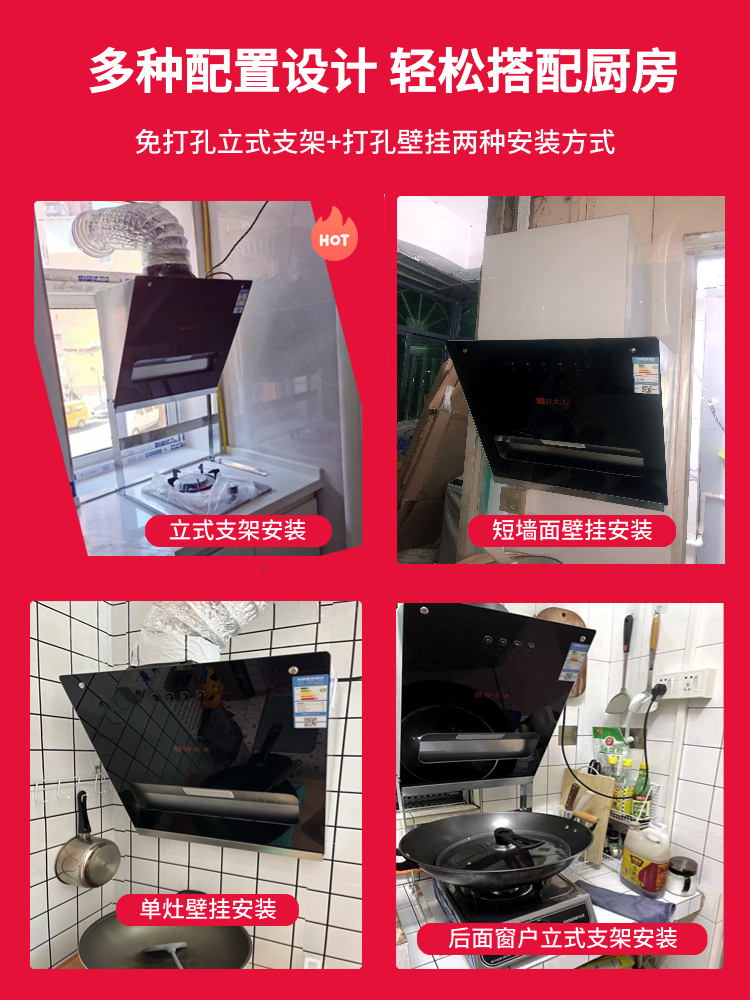 레인지 후드 주방 레인지 후드 설치-무료 아파트 임대실 연기 후드 가정용 작은 측면 흡입스토어 가기