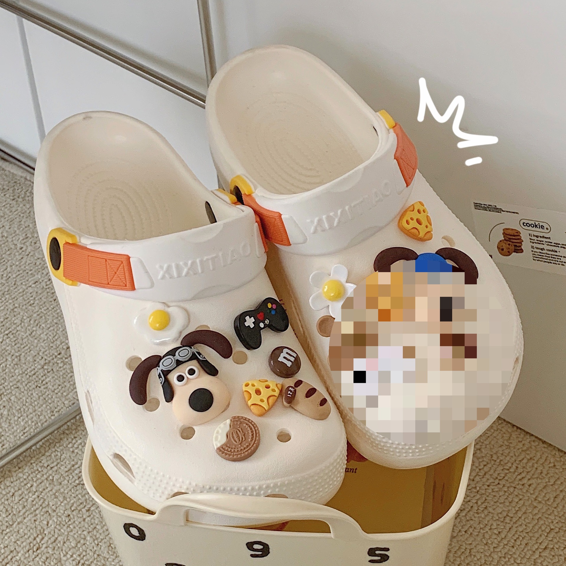 남자와 여자를위한 재미있는 귀여운 DIY 동굴 신발 여름 의상 학생 Ins 올 매치 빅 헤드 강아지 샌들