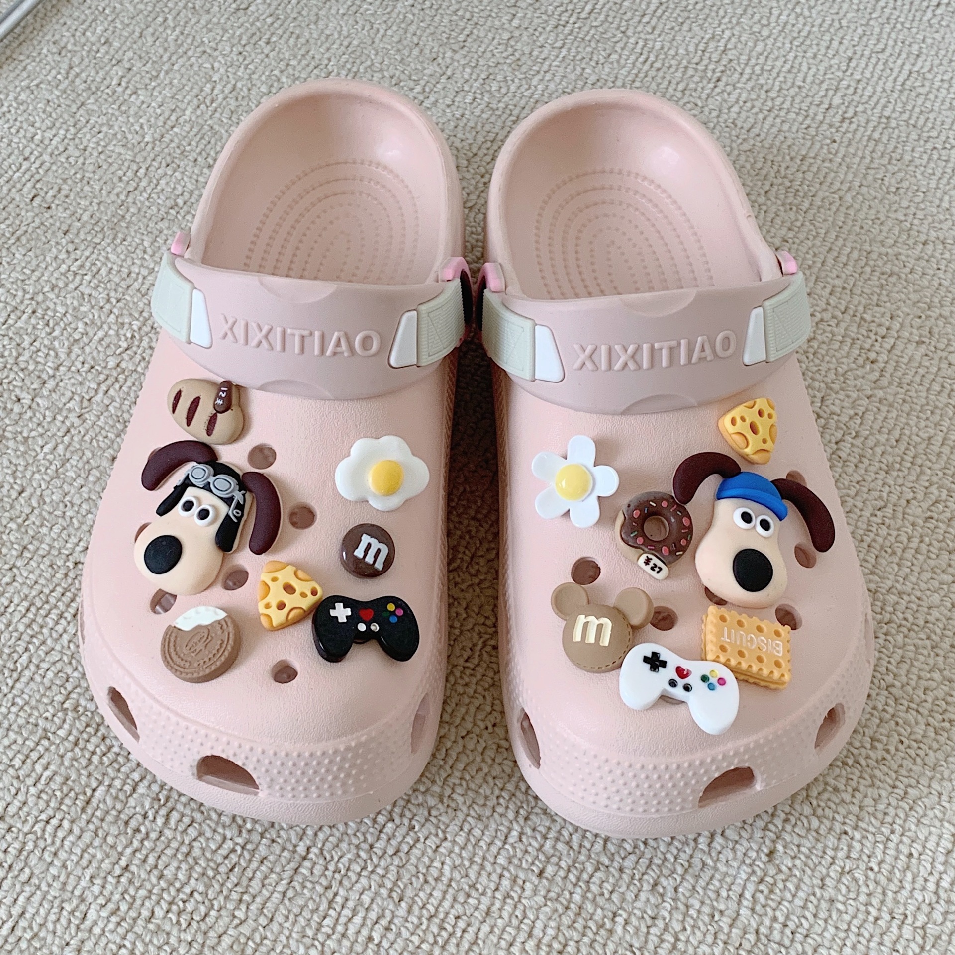 남자와 여자를위한 재미있는 귀여운 DIY 동굴 신발 여름 의상 학생 Ins 올 매치 빅 헤드 강아지 샌들스토어 가기