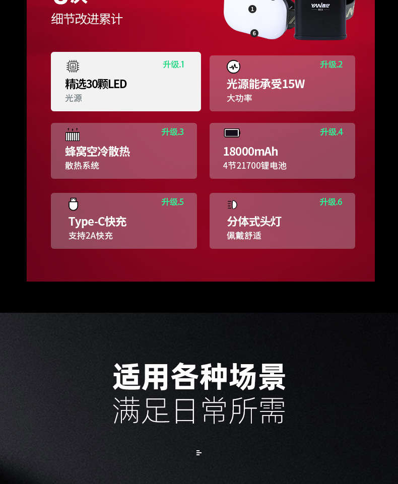 Yanni B55 투광 헤드라이트 강한 빛 충전 초고휘도 난시 헤드 장착형 대형 작업 야외 수리스토어 가기