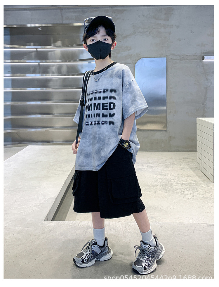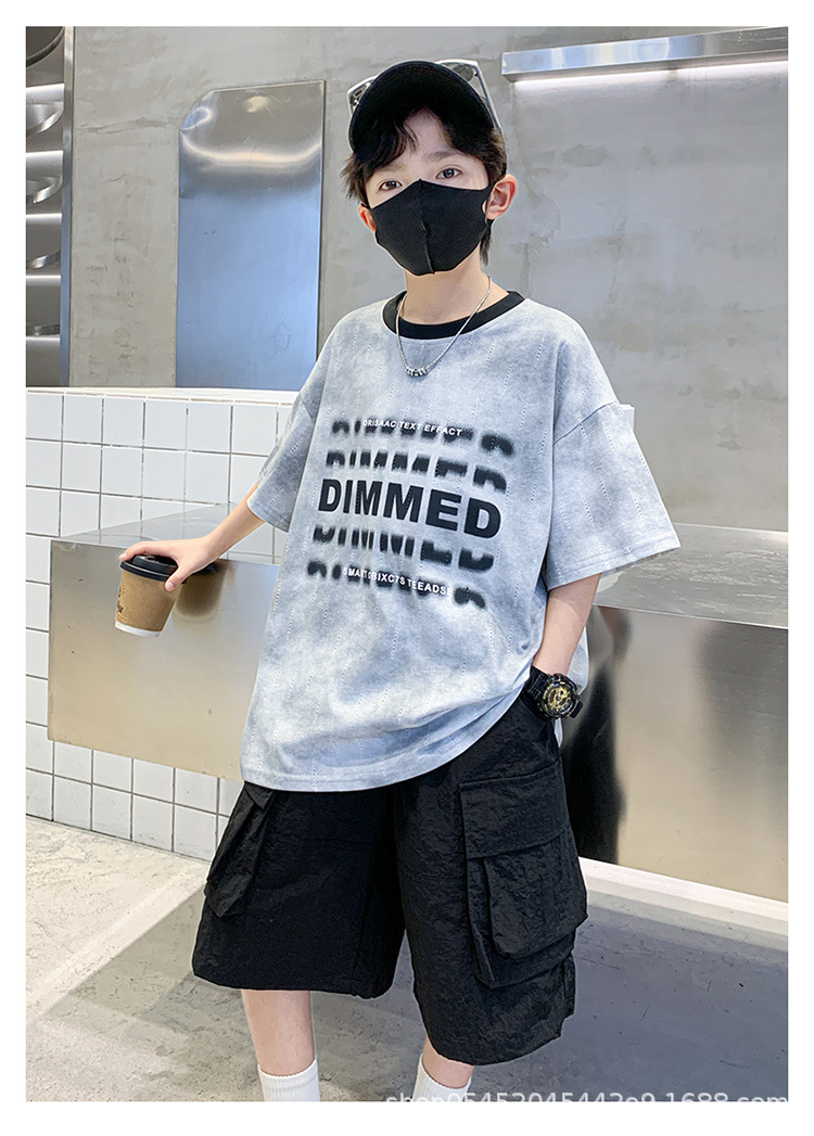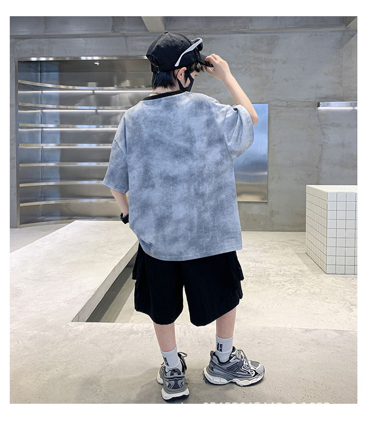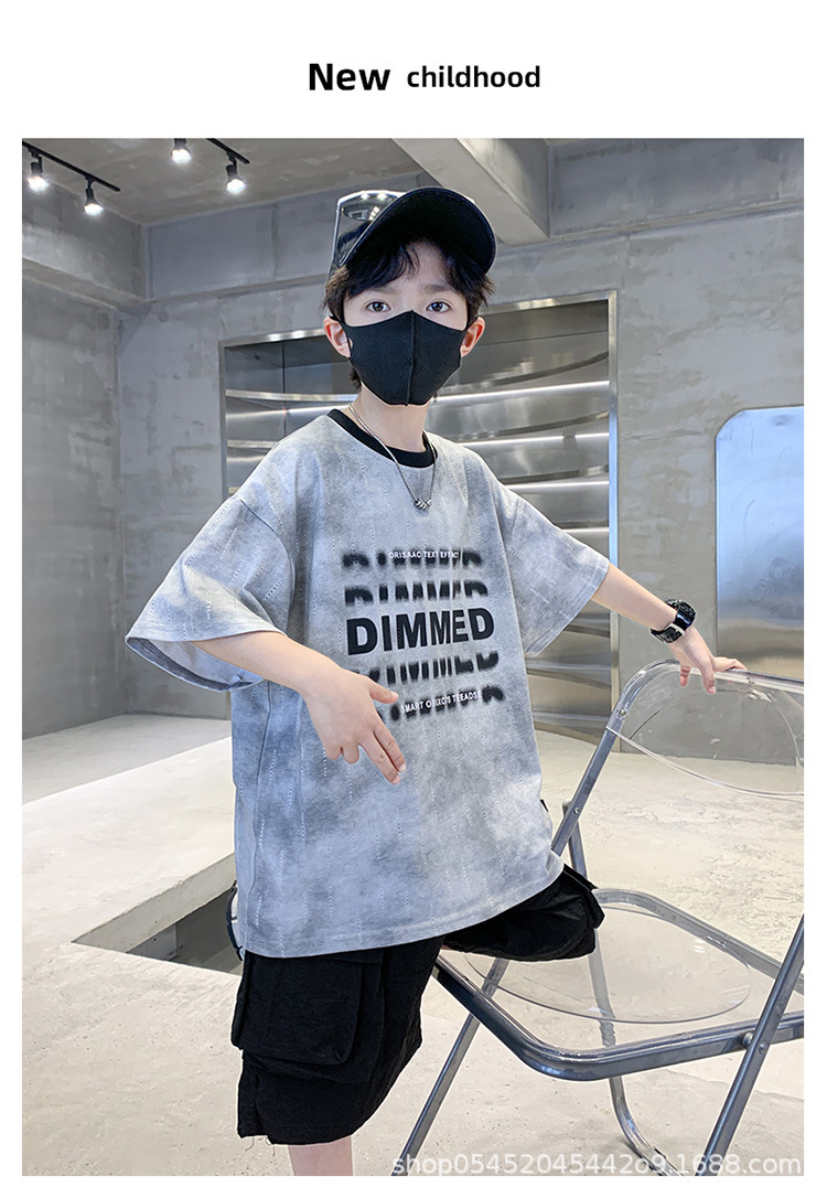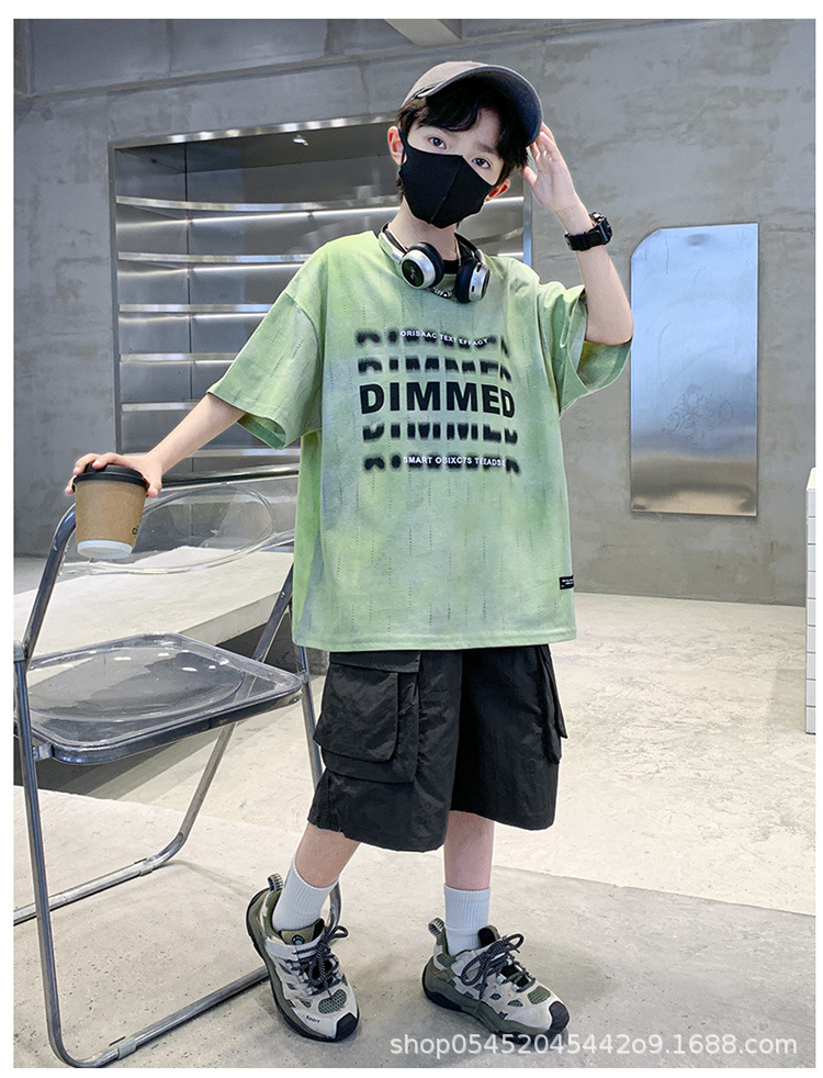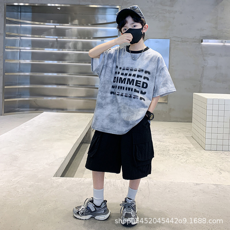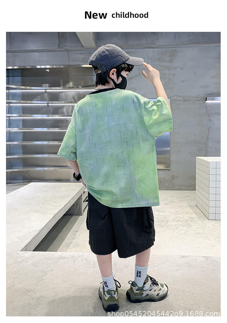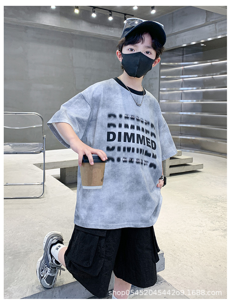 소년 여름 정장 2025 새로운 큰 어린이 여름 얇은 소년 잘 생긴 타이 염색 어린이 반팔 티셔츠 트렌디 쿨 t스토어 가기