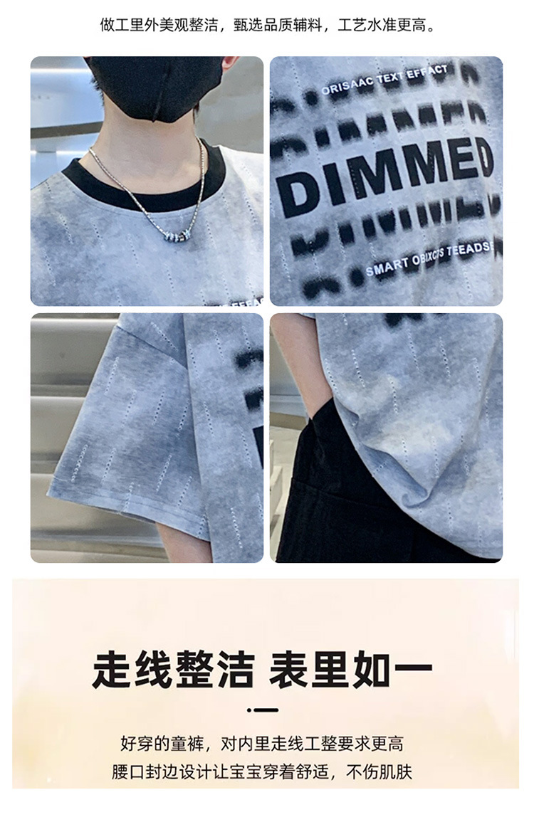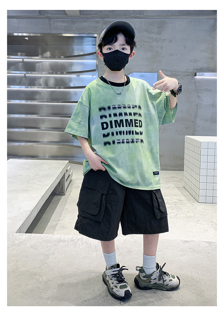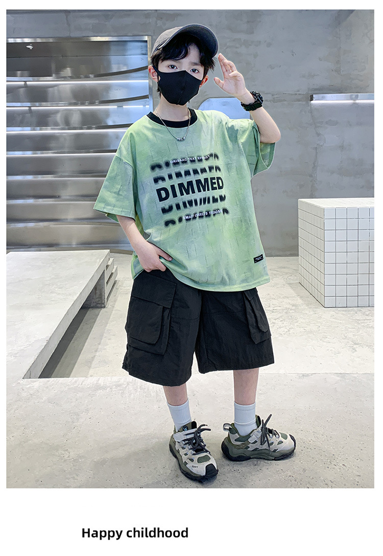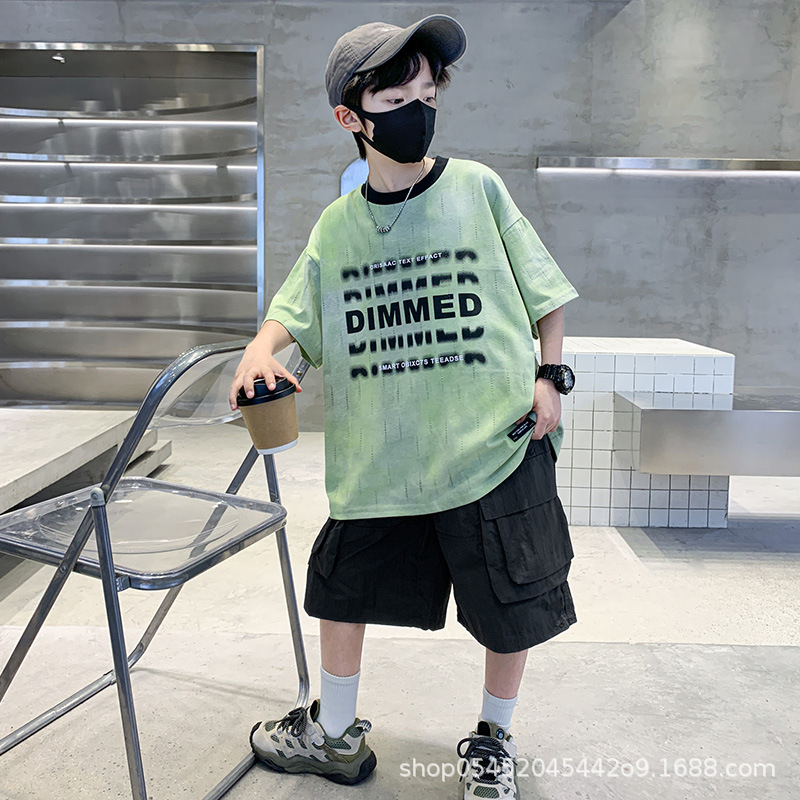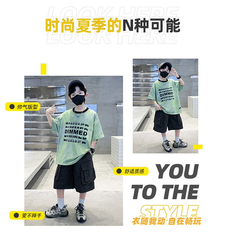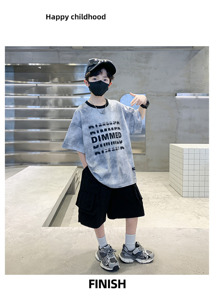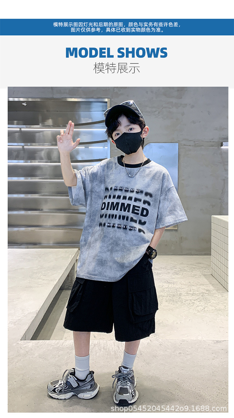 소년 여름 정장 2025 새로운 큰 어린이 여름 얇은 소년 잘 생긴 타이 염색 어린이 반팔 티셔츠 트렌디 쿨 t스토어 가기