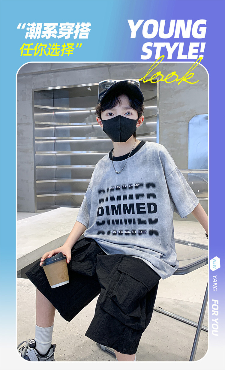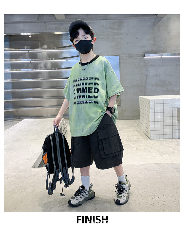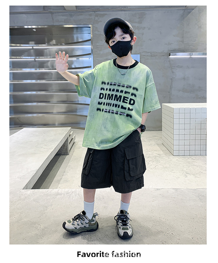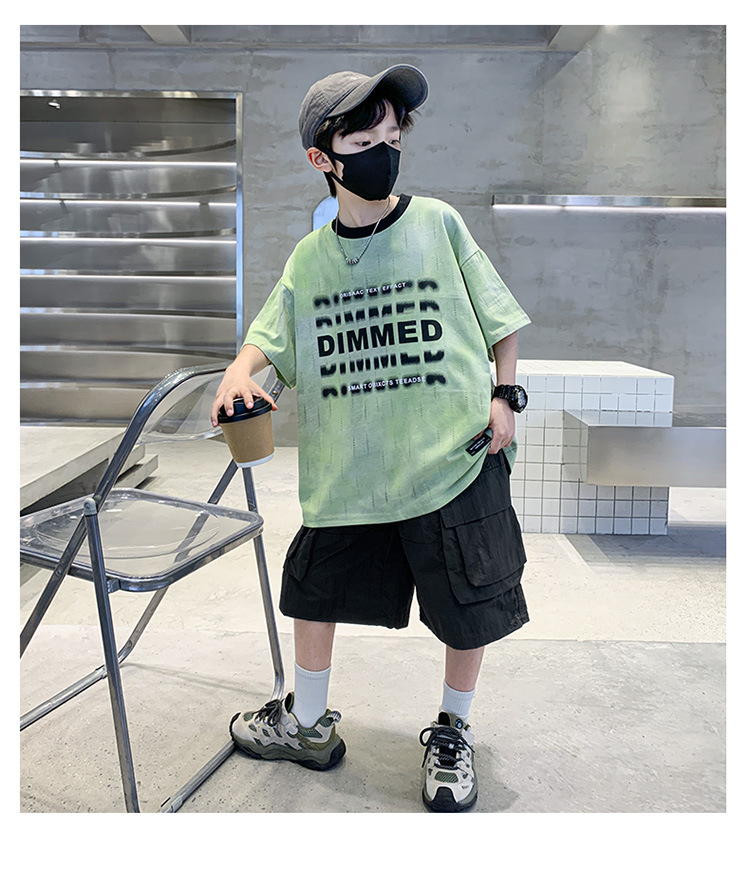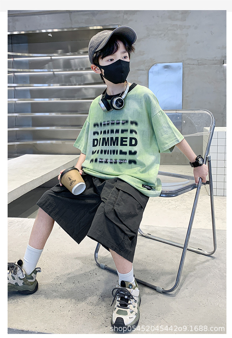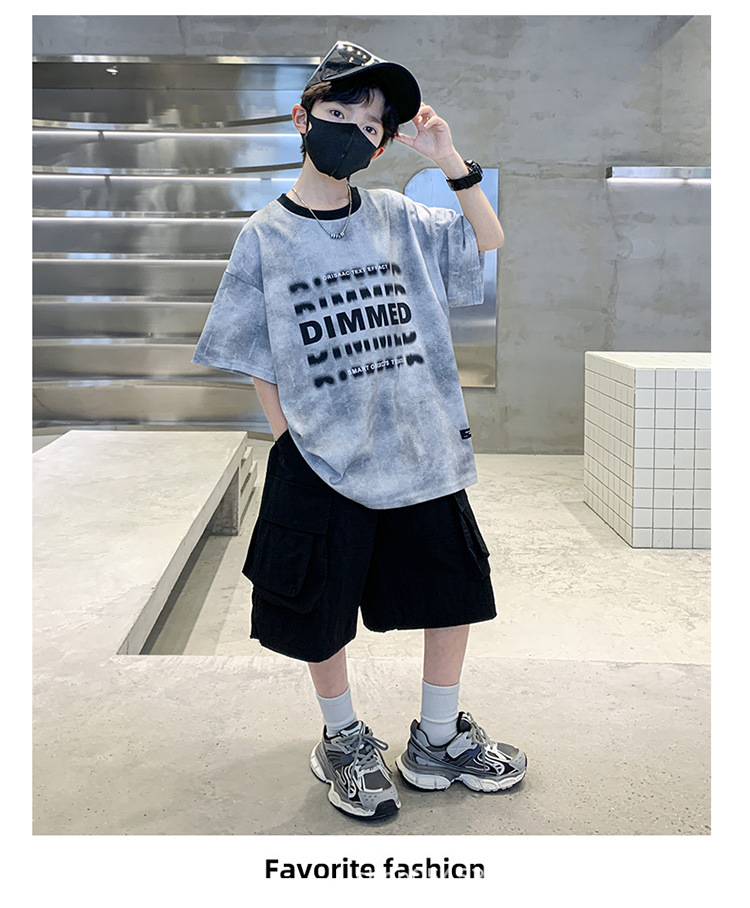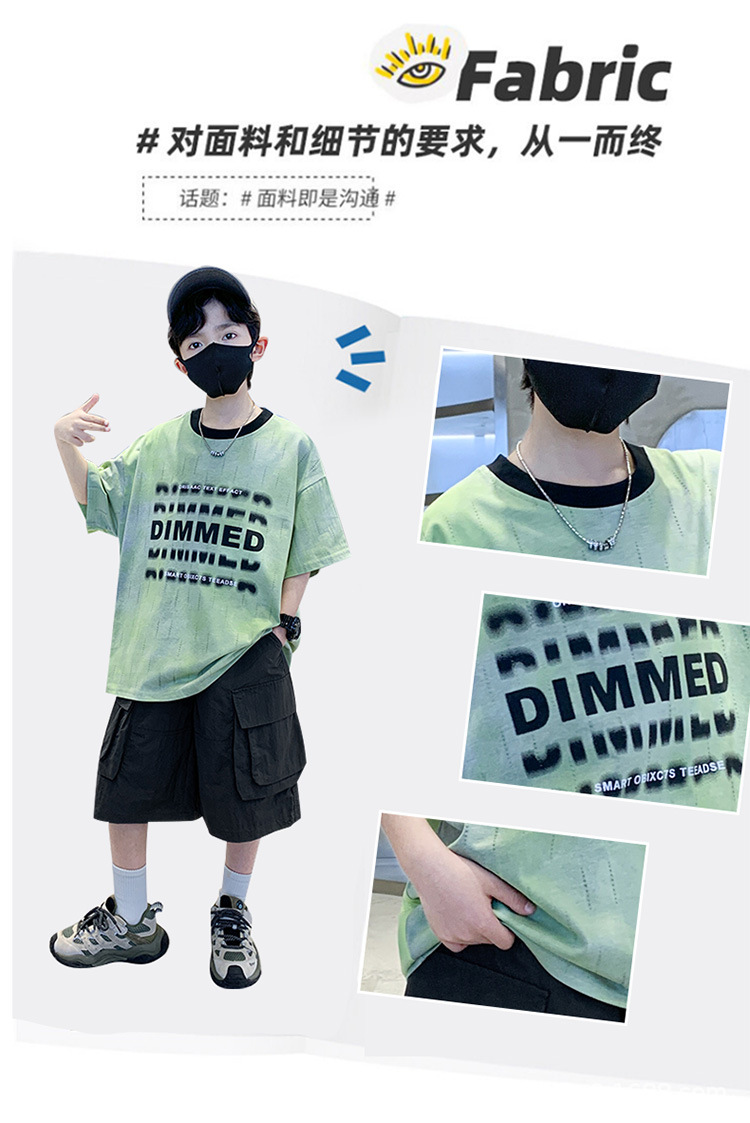 소년 여름 정장 2025 새로운 큰 어린이 여름 얇은 소년 잘 생긴 타이 염색 어린이 반팔 티셔츠 트렌디 쿨 t스토어 가기