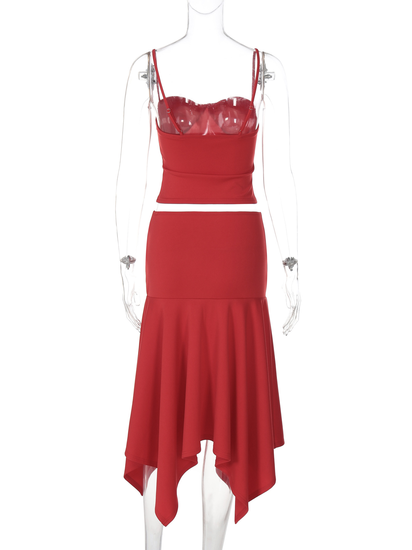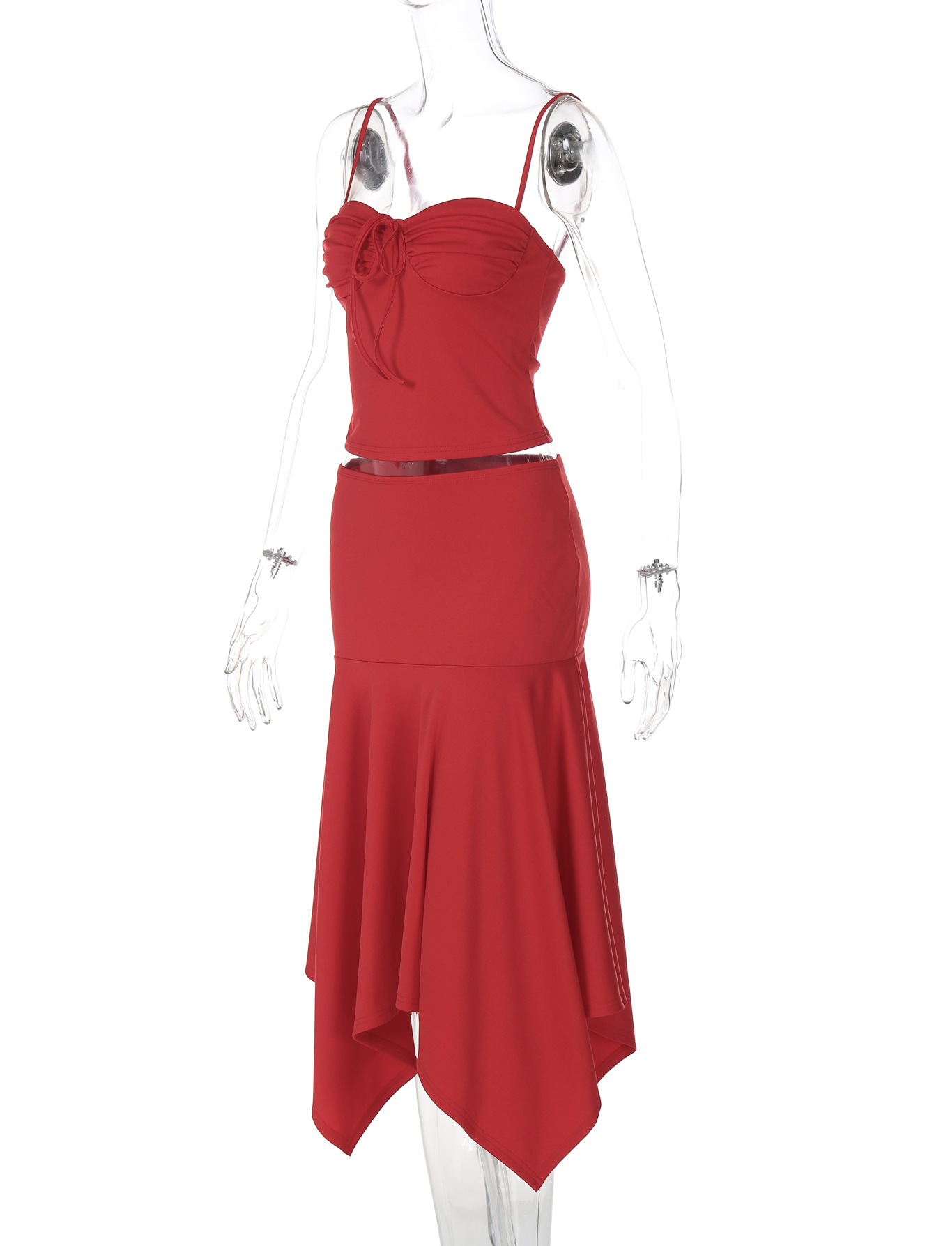 유럽과 미국 스타일의 국경 패션 싱글 스트랩 스커트 리더 라이트 오프 숄더 칼라 원피스 세트 기질 캐주얼 여성 의류