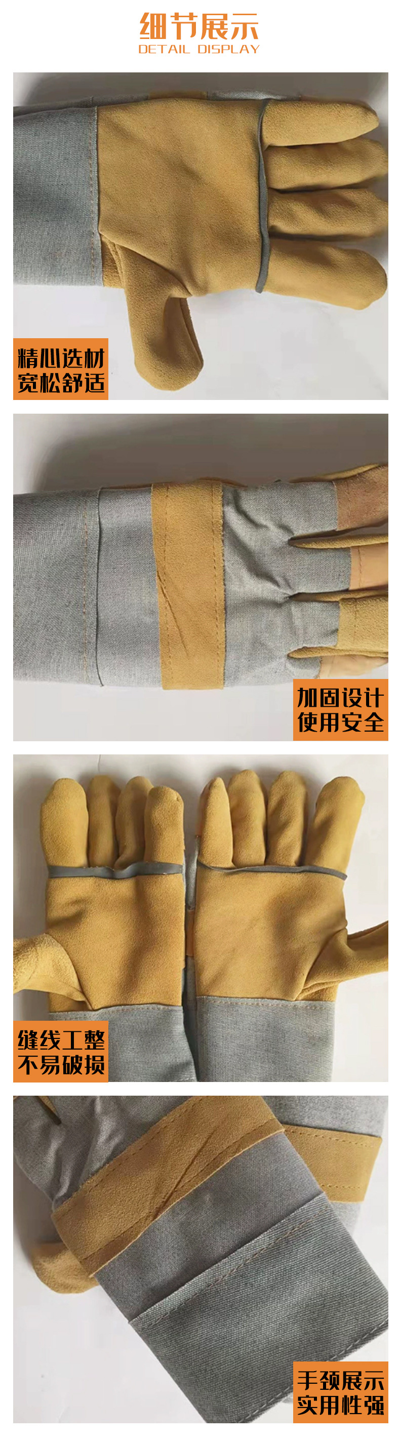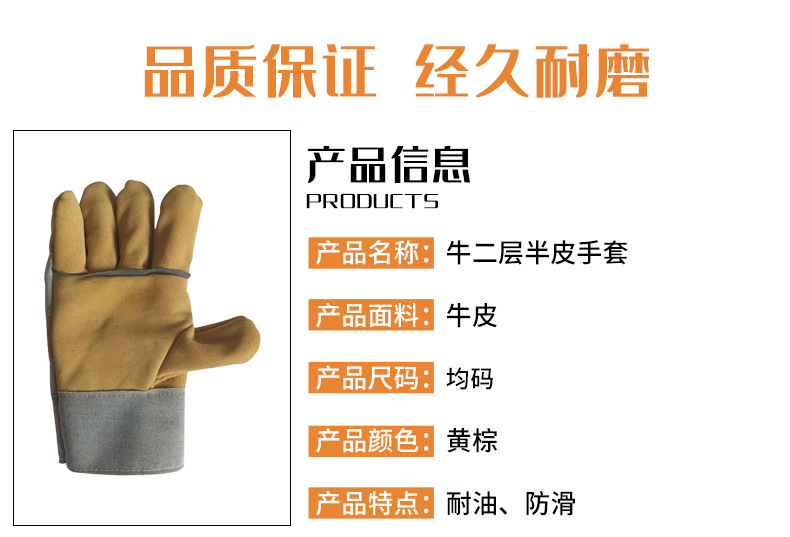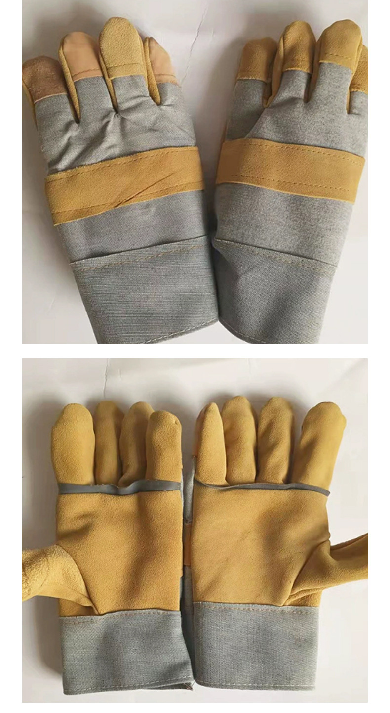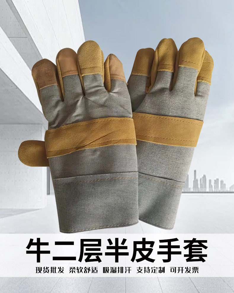 공장 직접 판매 반 가죽 노동 보호 단열 용접 장갑 2층 소가죽 내마모성 노동 가죽 및 타로 용접 장갑스토어 가기