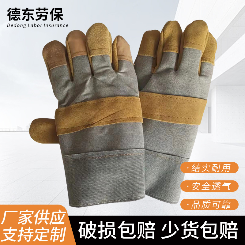 공장 직접 판매 반 가죽 노동 보호 단열 용접 장갑 2층 소가죽 내마모성 노동 가죽 및 타로 용접 장갑