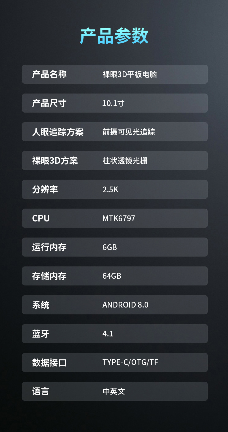 10.1 "몰입 형 알몸 눈 3D 태블릿 안드로이드 13 4 64G 교육 비전 수정 게임