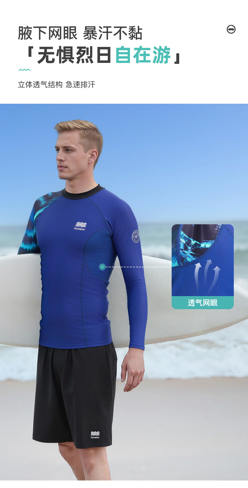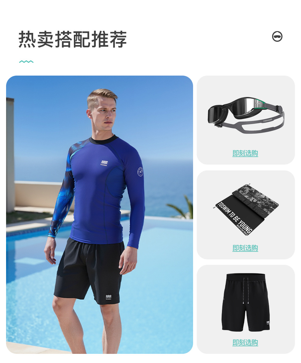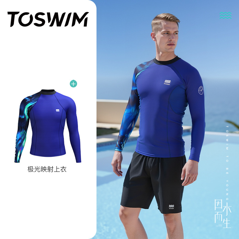 TOSWIM 남성용 수영 탑 속건성 긴팔 자외선 차단 탑 비치 서핑 수영복 남성용 온천스토어 가기