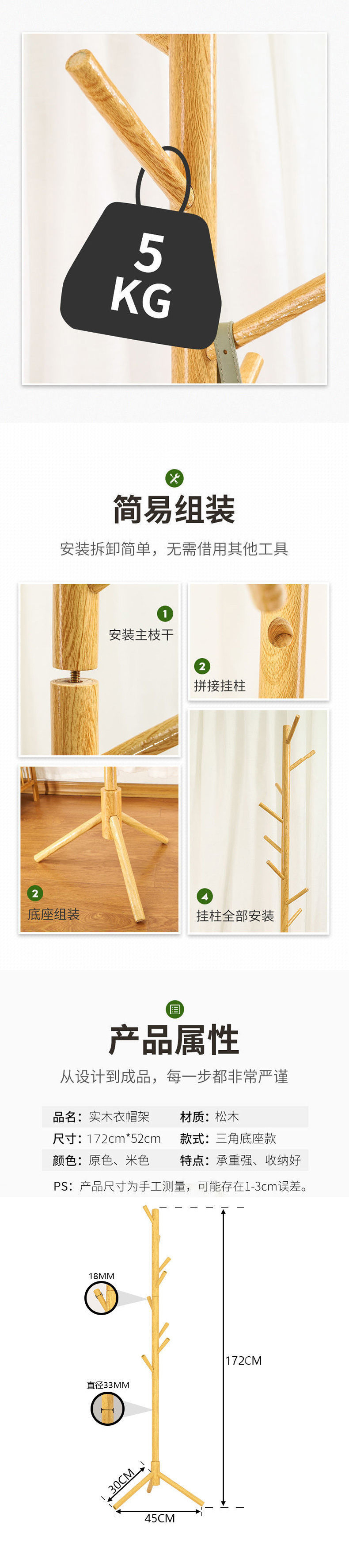 단단한 나무 코트 랙 바닥 침실 걸이 현대 간단한 옷 랙 거실 수직 간단한 홈 걸이