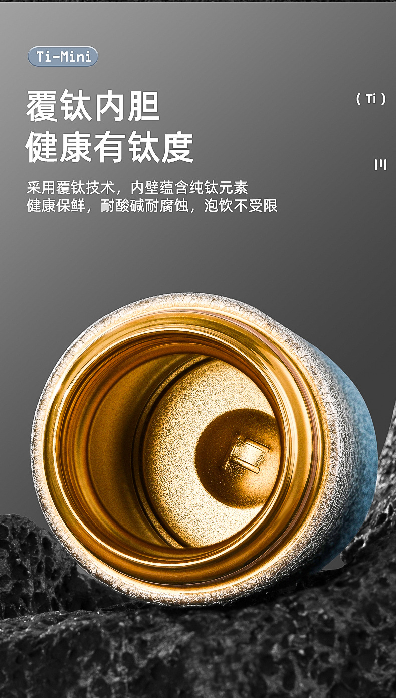티타늄 진공 이중층 보온병 컵 항균 건강 차 분리 차 컵으로 덮인 폭발성 소형 휴대용 포켓 컵스토어 가기