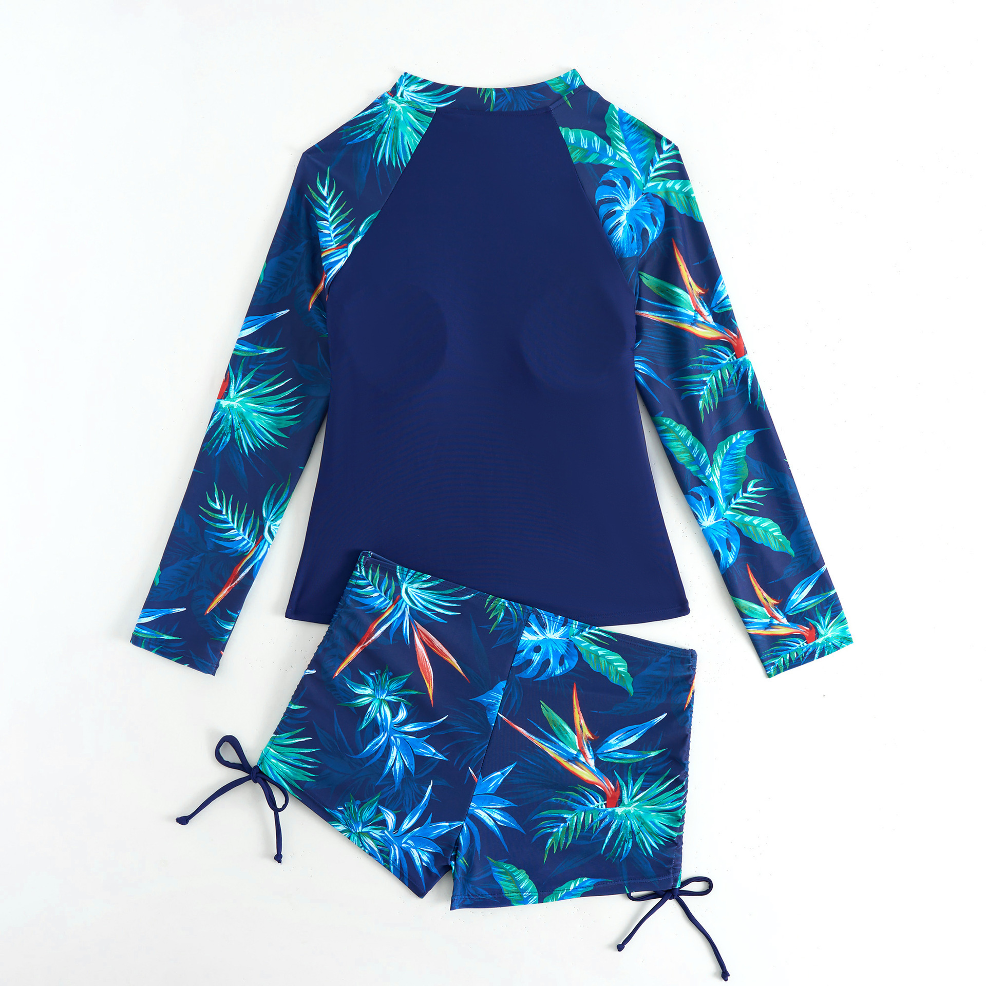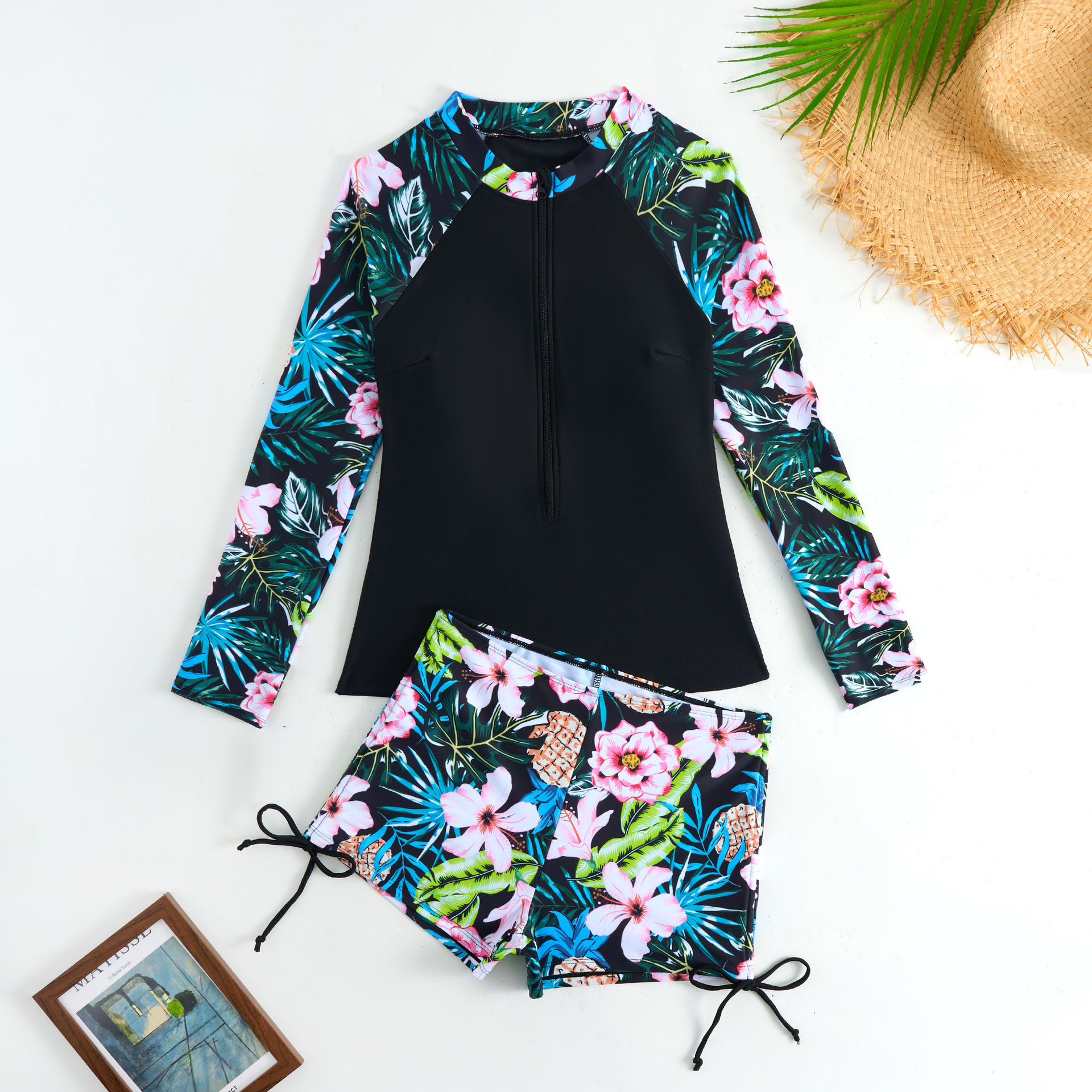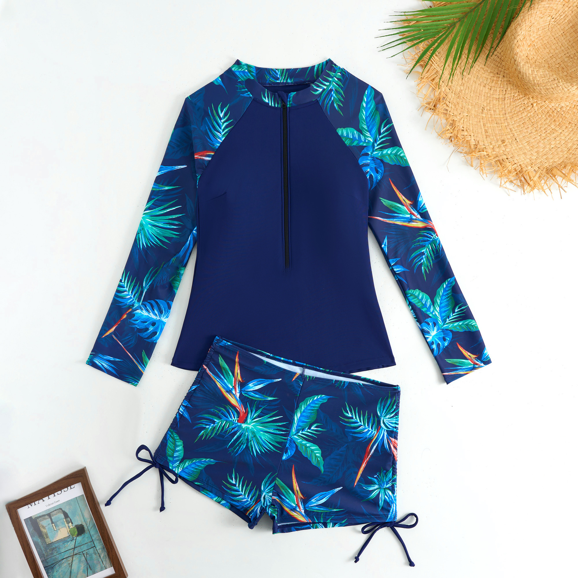 2025新款欧美泳衣女长袖分体运动竞技印花泳衣女亚马逊女士潜水服