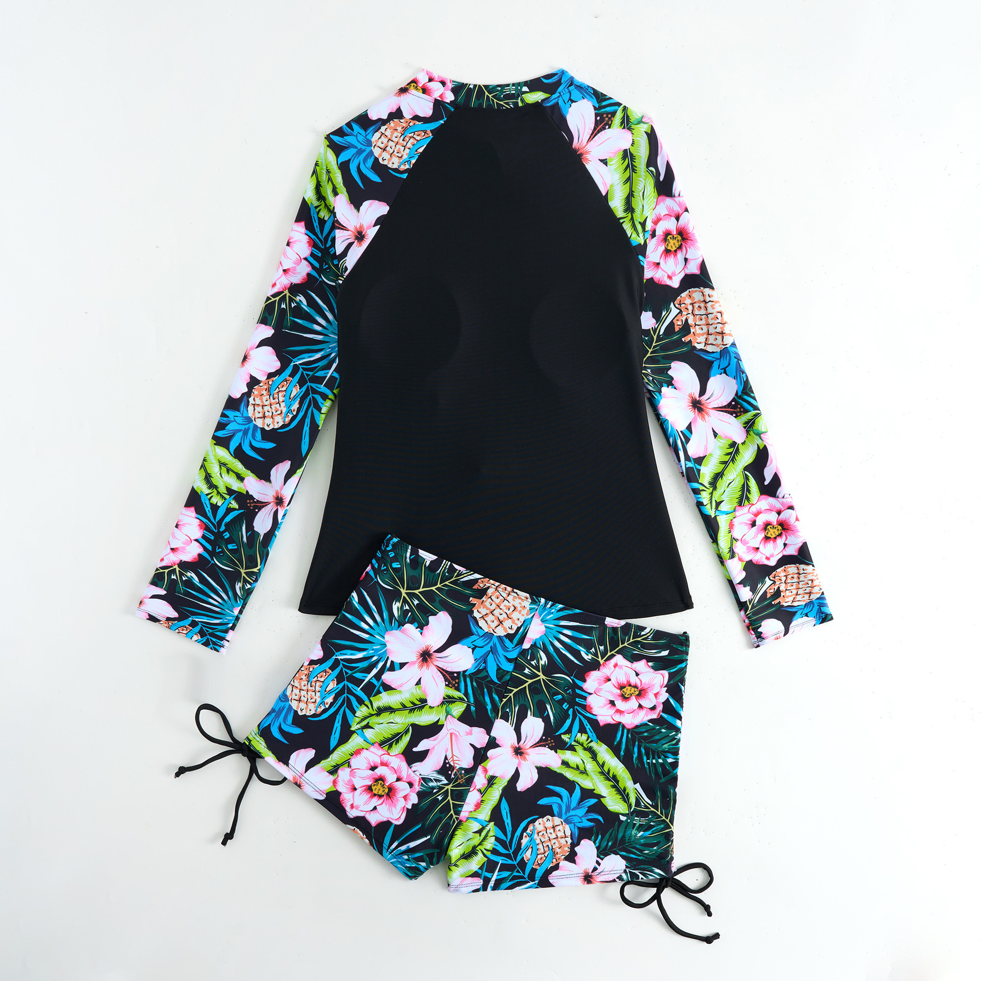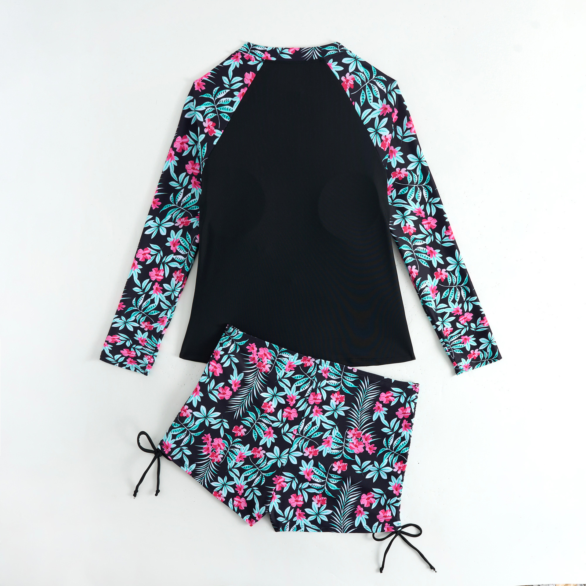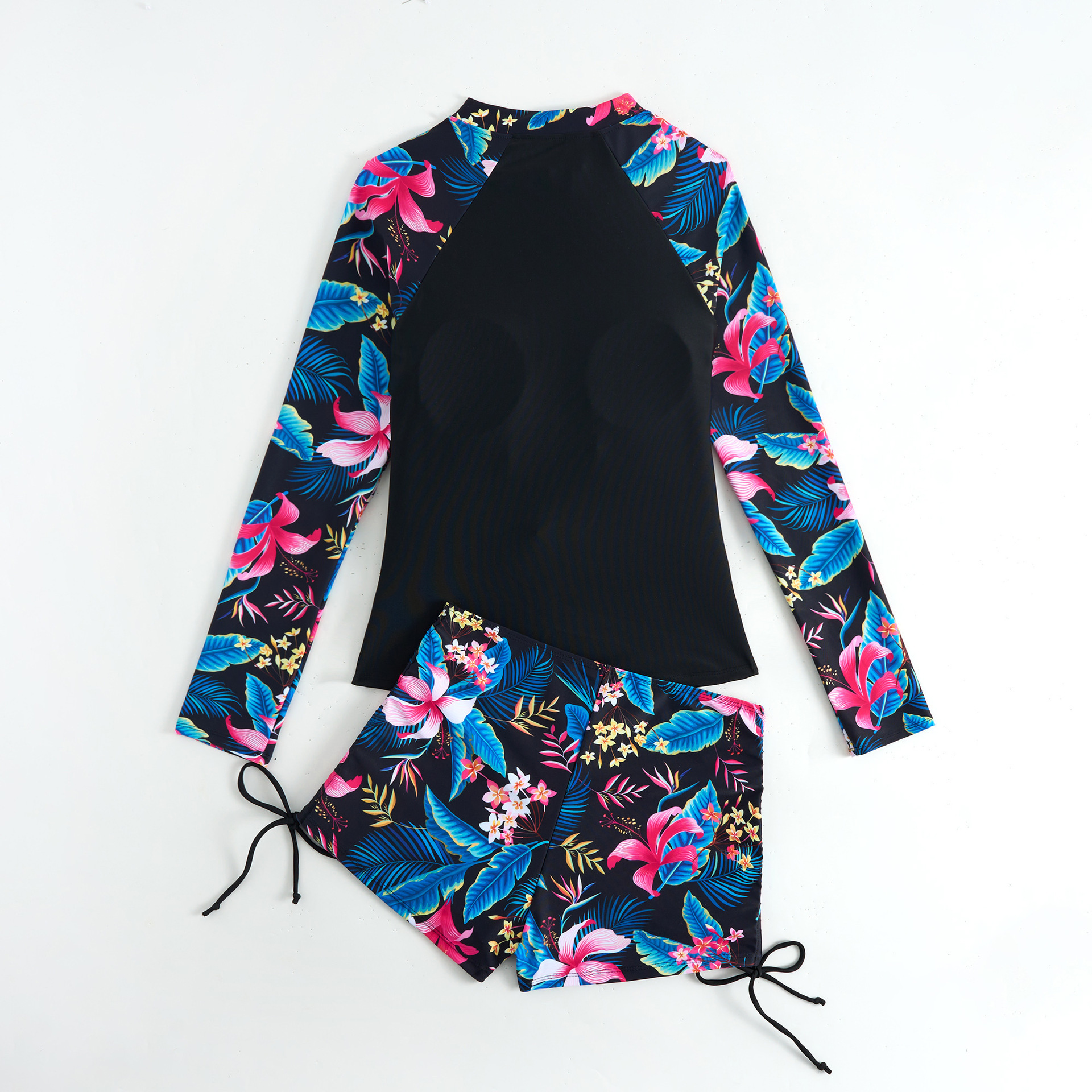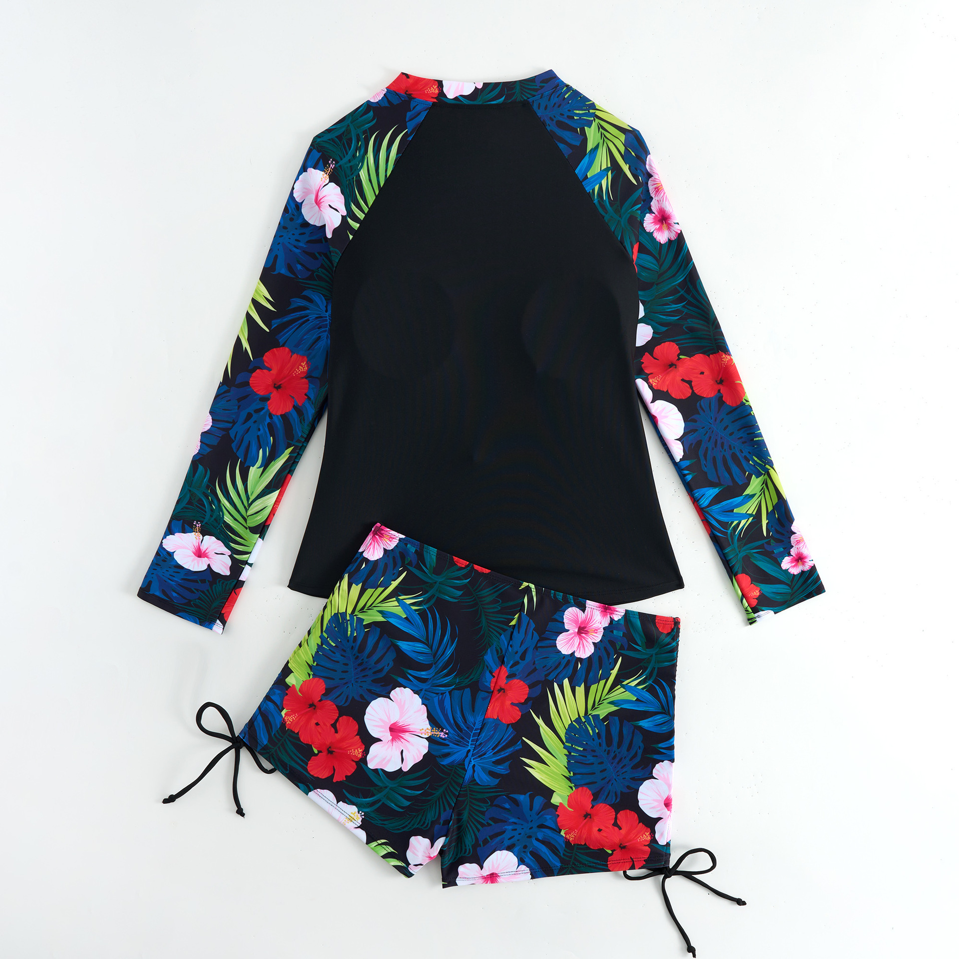 2025新款欧美泳衣女长袖分体运动竞技印花泳衣女亚马逊女士潜水服