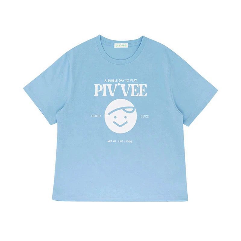 한국 구매 Pivvee 골프웨어 24 여름 여성 골프 로고 라운드 넥 다용도 반팔 티셔츠 블루스토어 가기