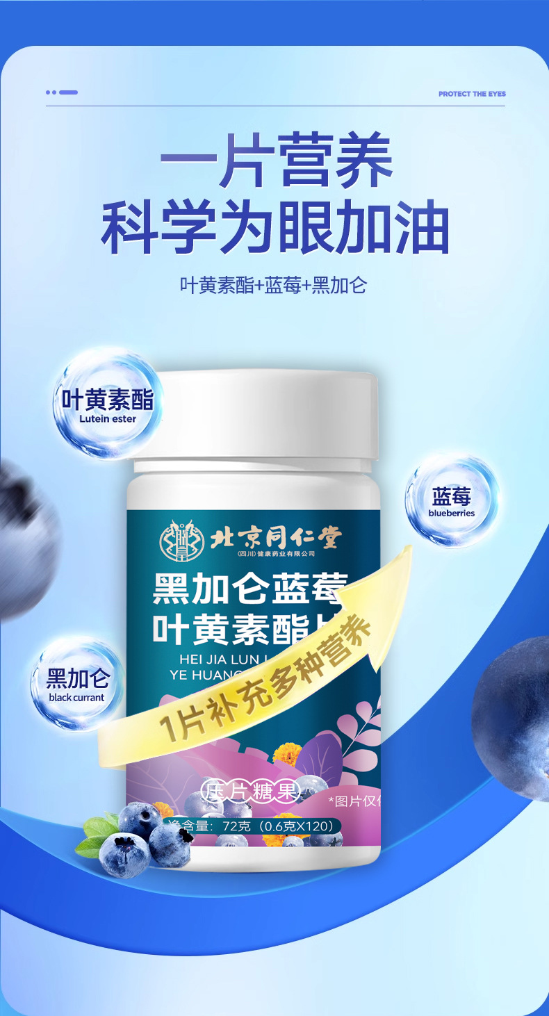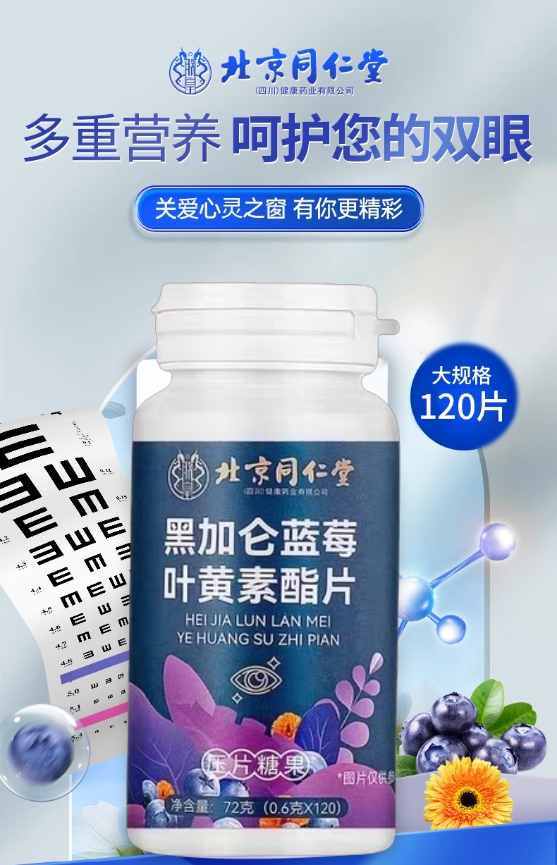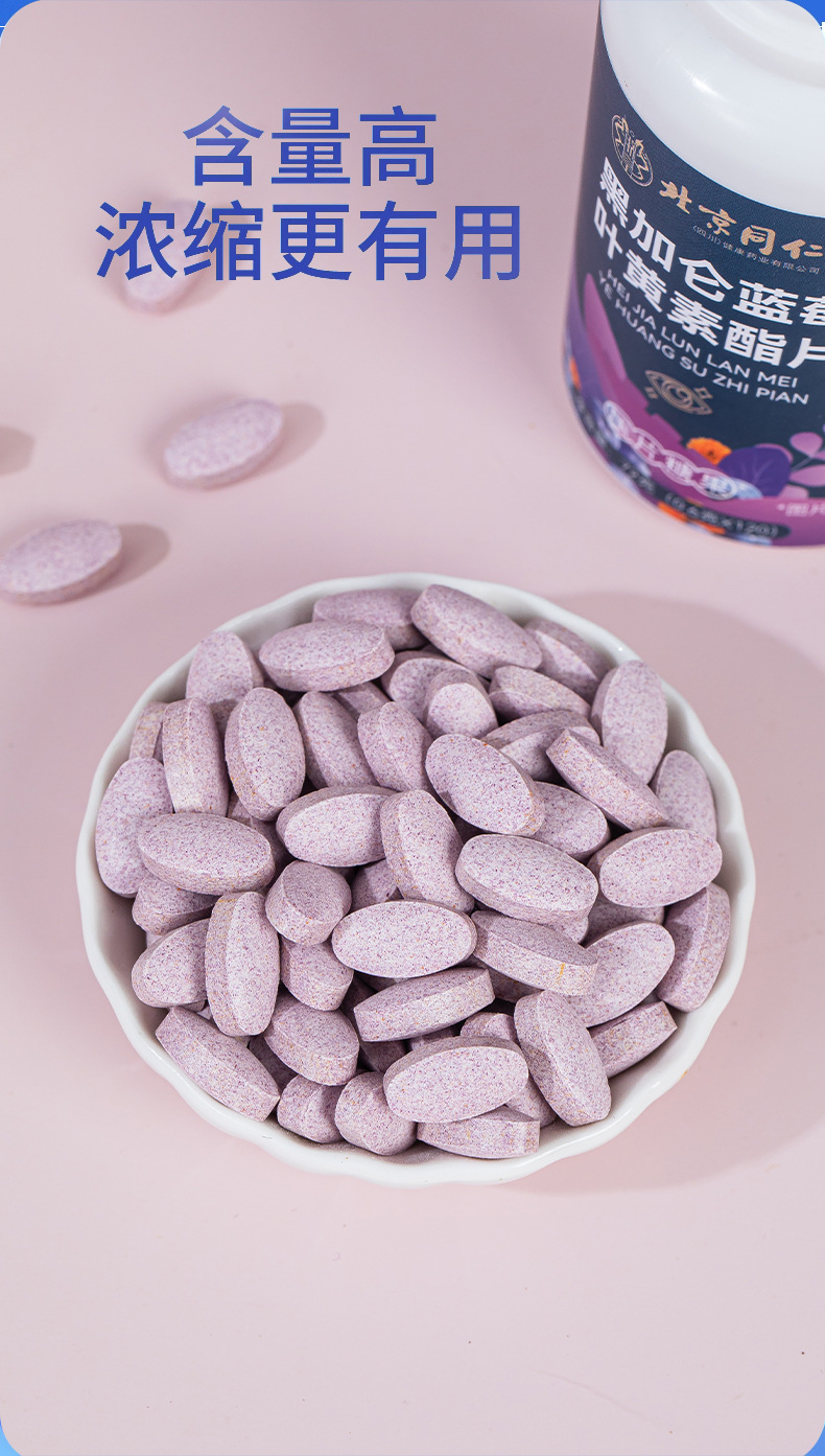 학생과 성인을 위한 베이징 Tongrentang 블랙커런트 블루베리 루테인 에스테르 정제 도매 및 직송스토어 가기